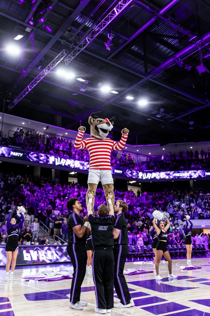 “G-C-U,” chants echoed as the Spirit teams put on their traditional game day performance in front of the arena. America’s favorite mascot, Thunder, joined in for the dancing and cheering for the university while entertaining the crowd by high-fiving children, hugging and mingling around guests.