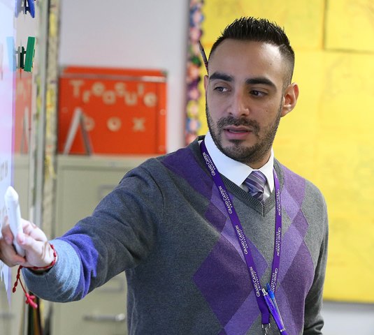 Pérez learned early that this method allows students to feel what it’s like to guide their own classmates to the correct answers and digest the material with ease. The 32-year-old Grand Canyon University alumnus and west Phoenix native grew up on the same side of town as his students — many who come from immigrant families and low-income homes and are part of a district with a higher than average number of children who qualify for free or reduced-cost lunch.