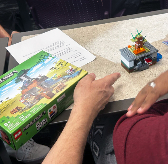Cottrell divided up the group of students for the Lego lesson. One group, the client, had to explain a building project using words alone to another group of students, the engineering team. That team wrote the instructions down and passed those written instructions to the next group, the architects, which drew out what the previous team had written. They delivered those drawings to the contractors, who constructed the building using Legos.