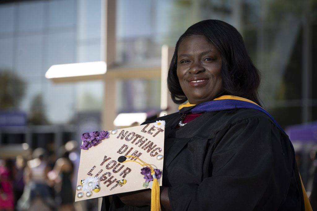 “As I got older, my rocky past made me want to do something to help other people,” said Glover, an online student who drove from Amarillo, Texas, to participate in her GCU commencement ceremony on Friday morning.