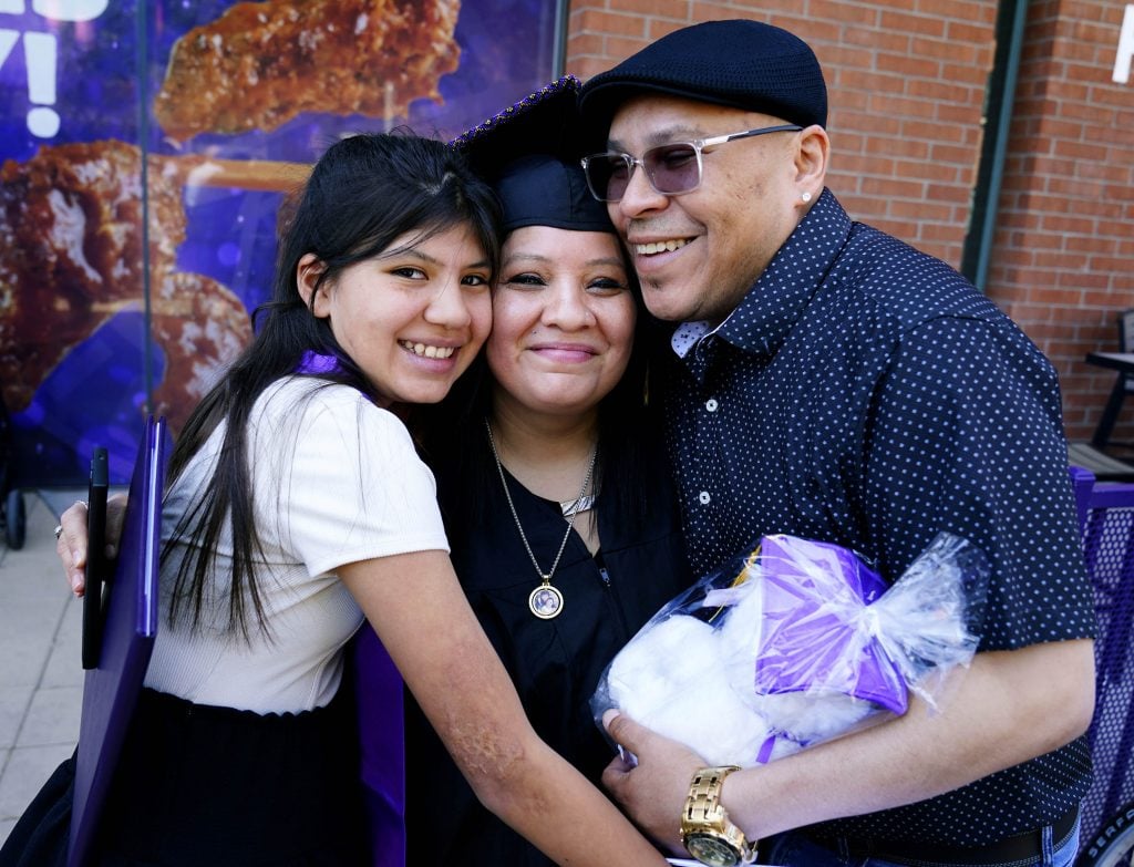 When Alicea began her associate degree, her children watched her work on homework during late nights. One day, her oldest daughter saw a college graduation commercial on TV and told her mom, “When you graduate, we will be there holding a sign, saying we are proud of you, mom,” Alicea said of the memory.