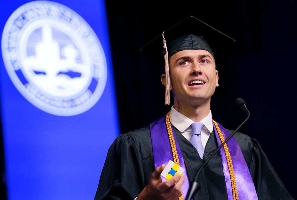 “You’re definitely going to get some doors closed on your face, but that was one thing my dad always emphasized – the value of a dollar and the hard work that it takes to get that,” the Grand Canyon University finance major said just a few days before he took the stage as this morning's student commencement speaker, complete with a Rubik's Cube in hand (more on that later).