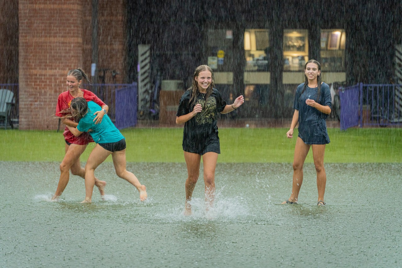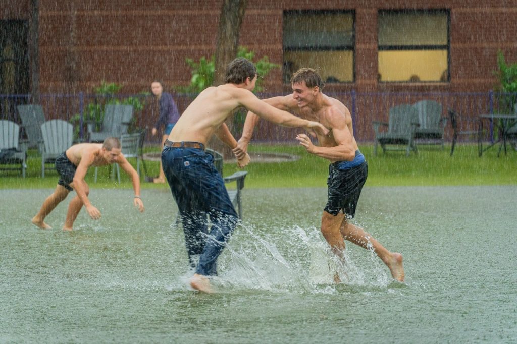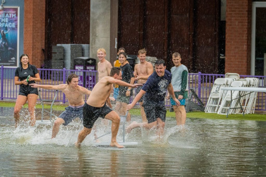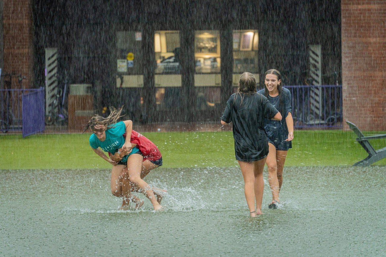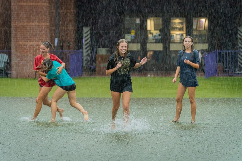 Students made the best out of the downpour on Friday by having a little fun on the Quad.