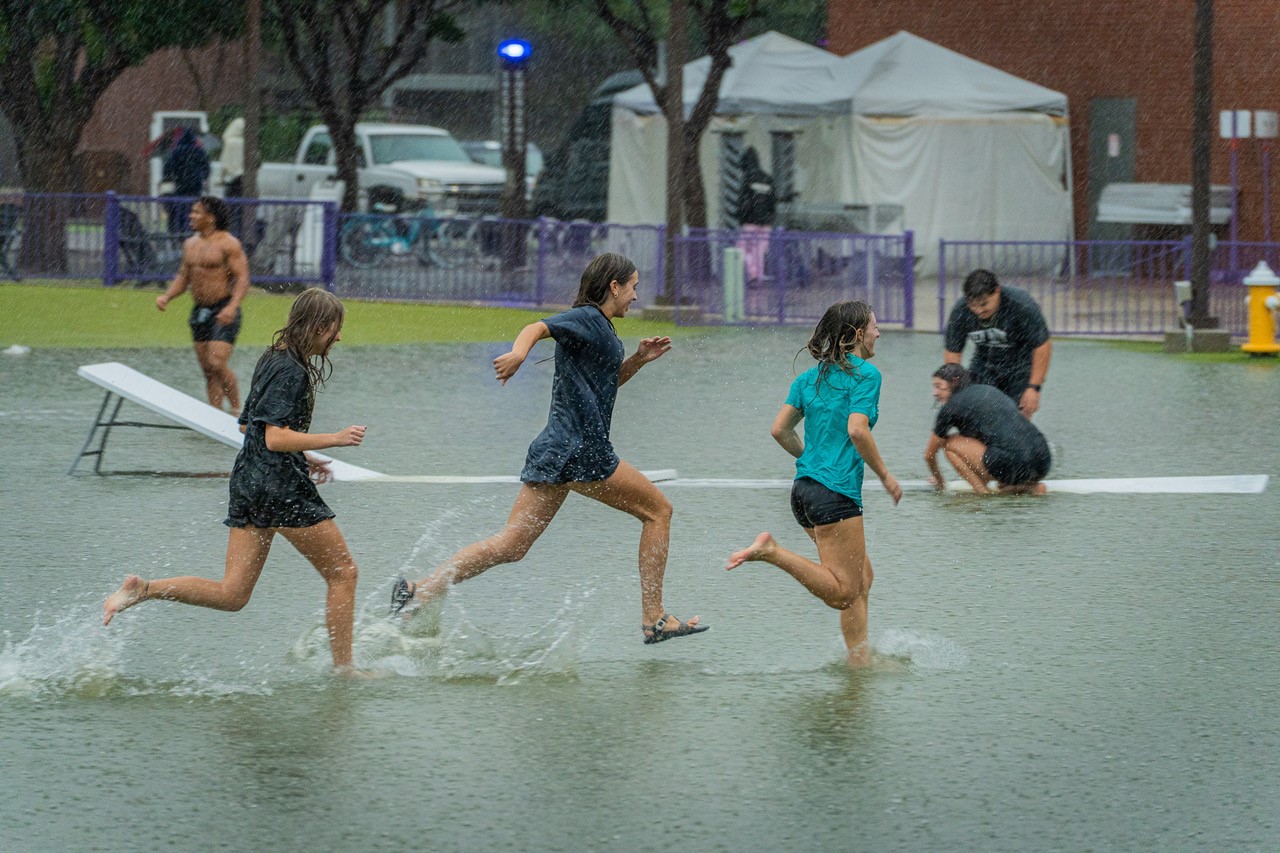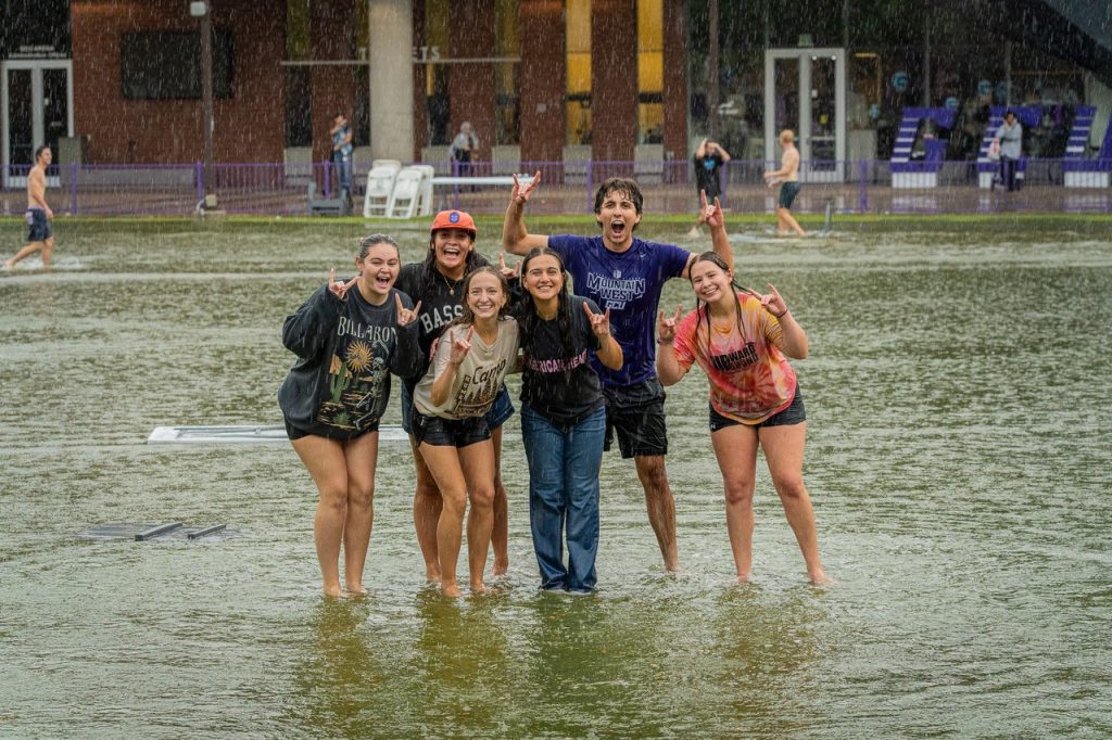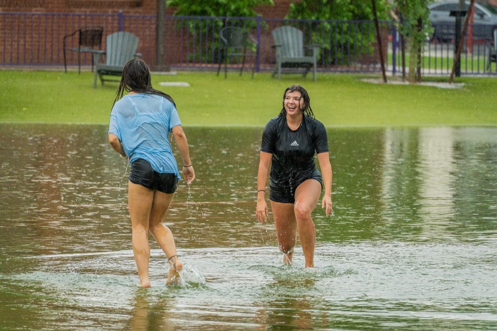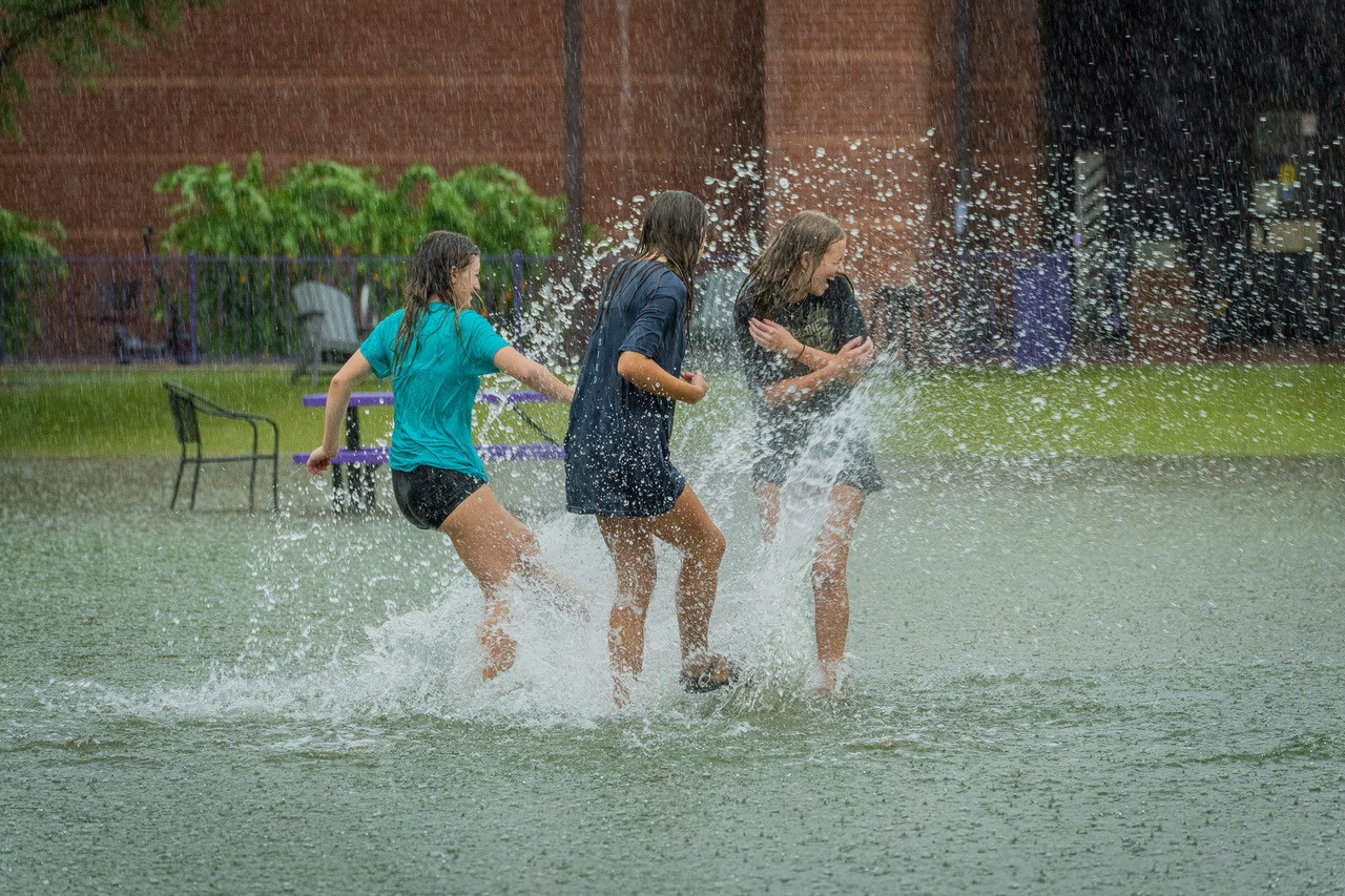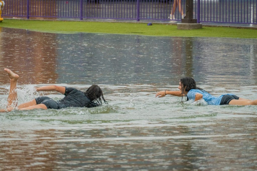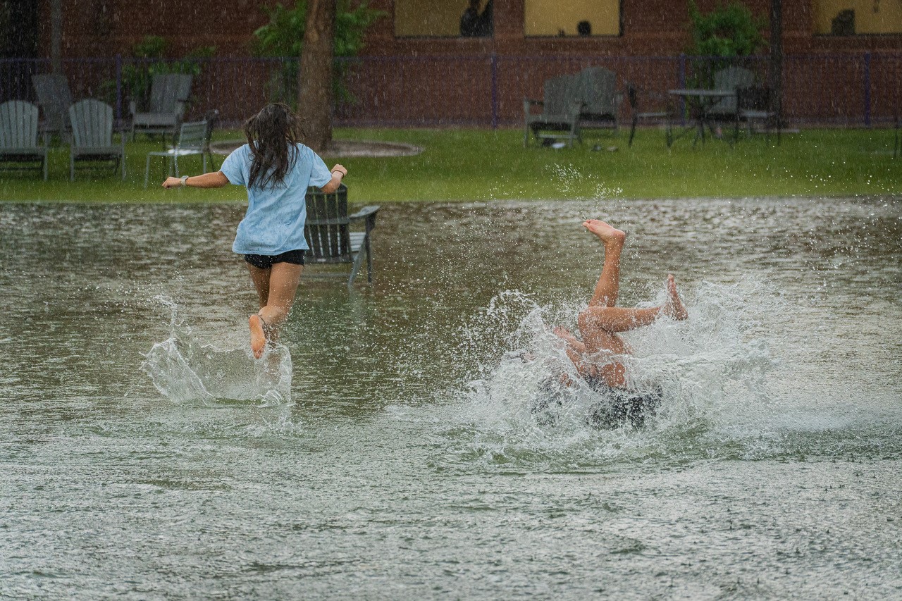 Students made the best out of the downpour on Friday by having a little fun on the Quad.