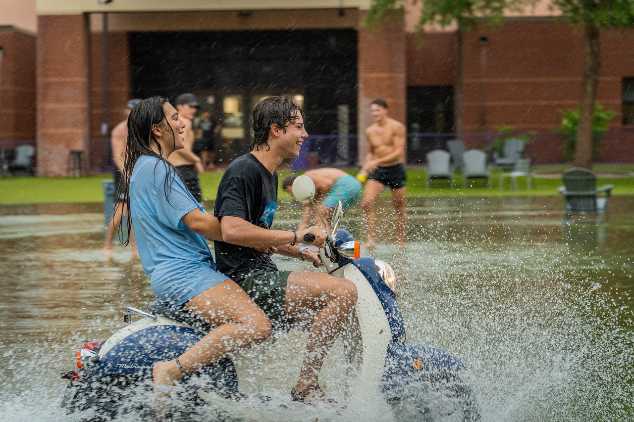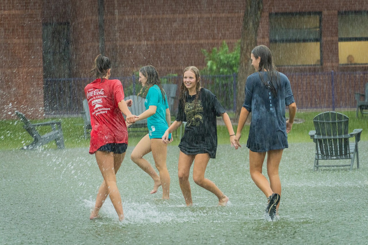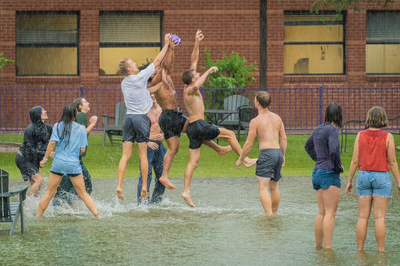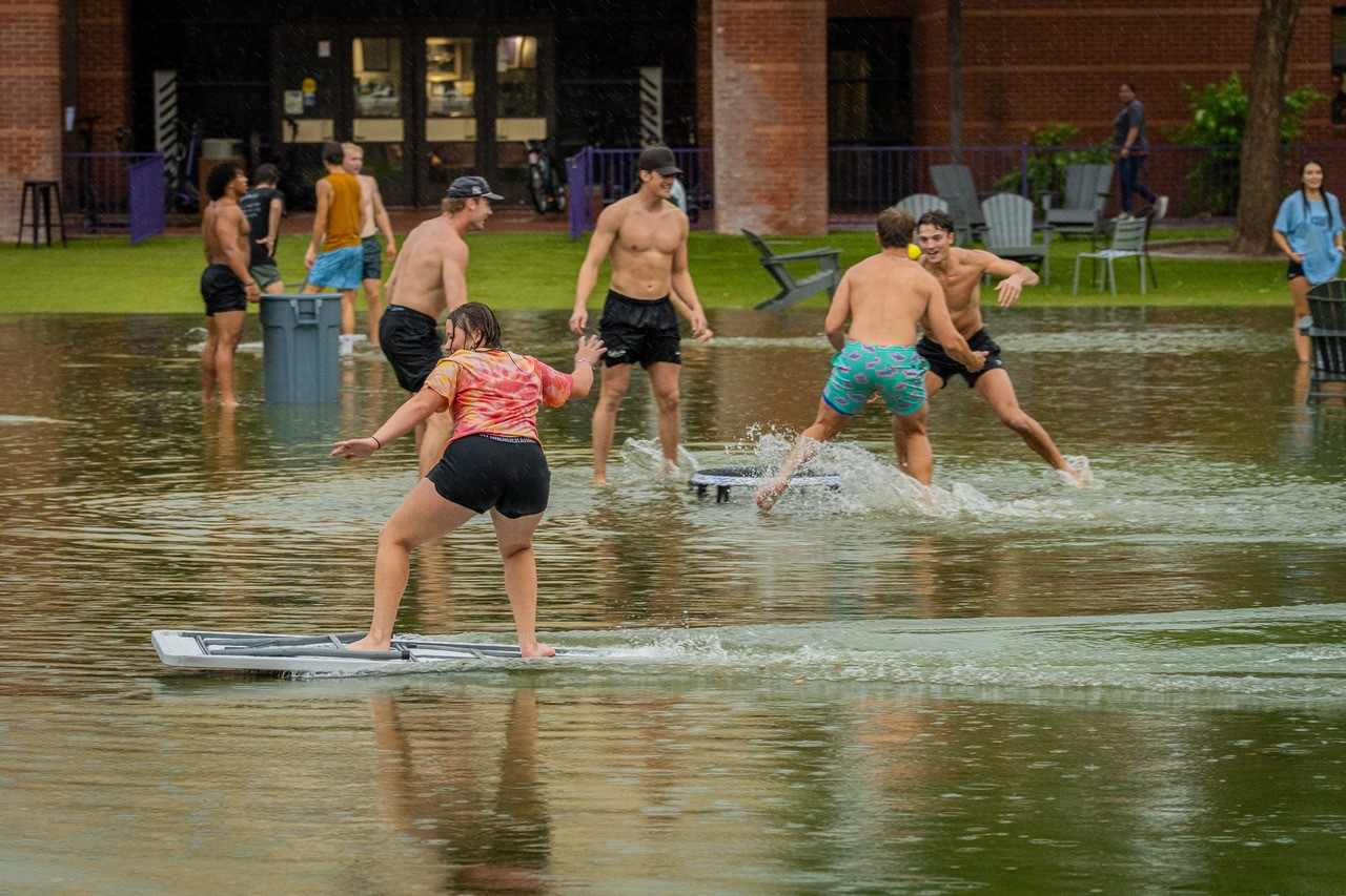 Students made the best out of the downpour on Friday by having a little fun on the Quad.