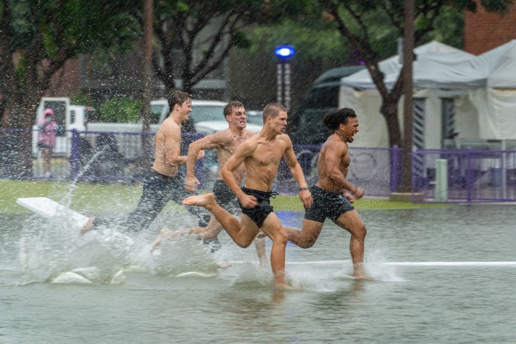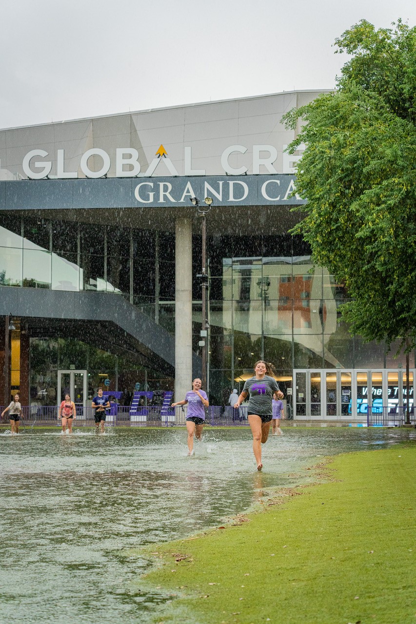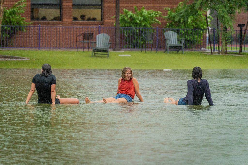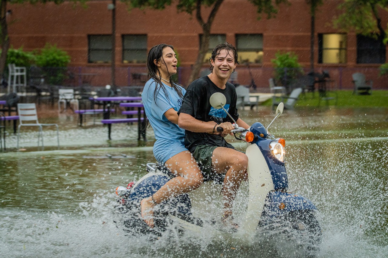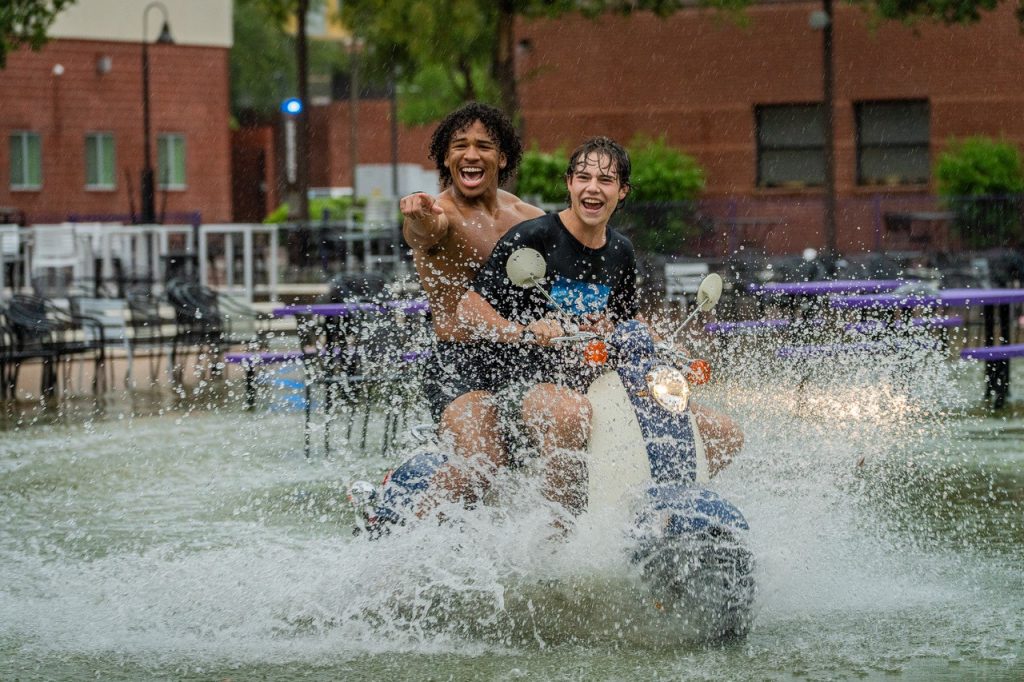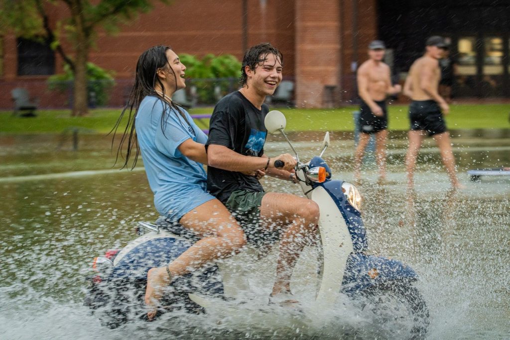 Students made the best out of the downpour on Friday by having a little fun on the Quad.