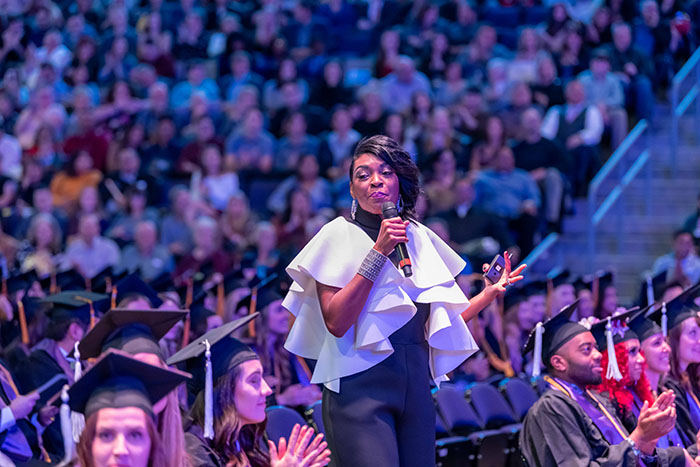 Simmons dazzles at efficient Winter Commencement