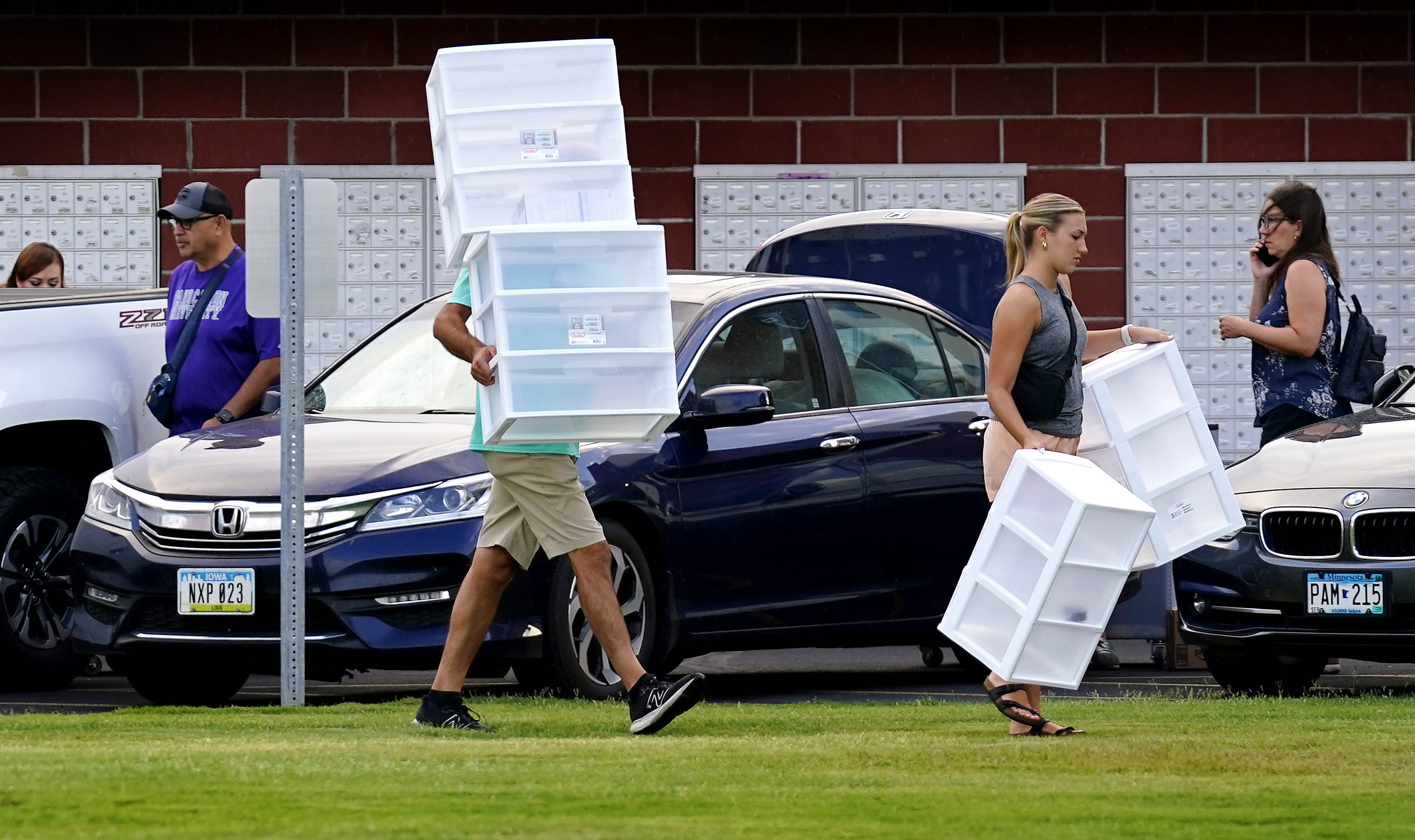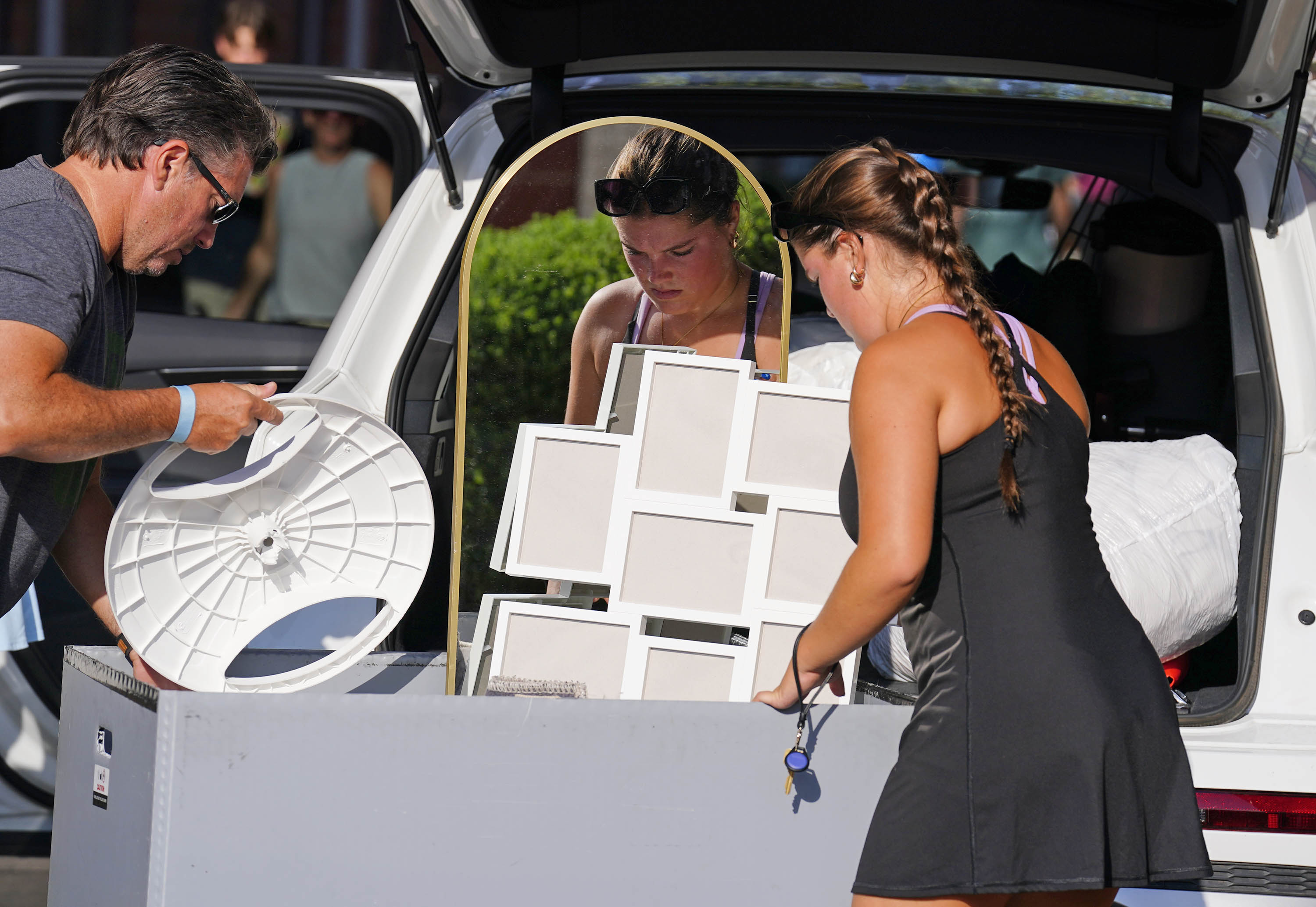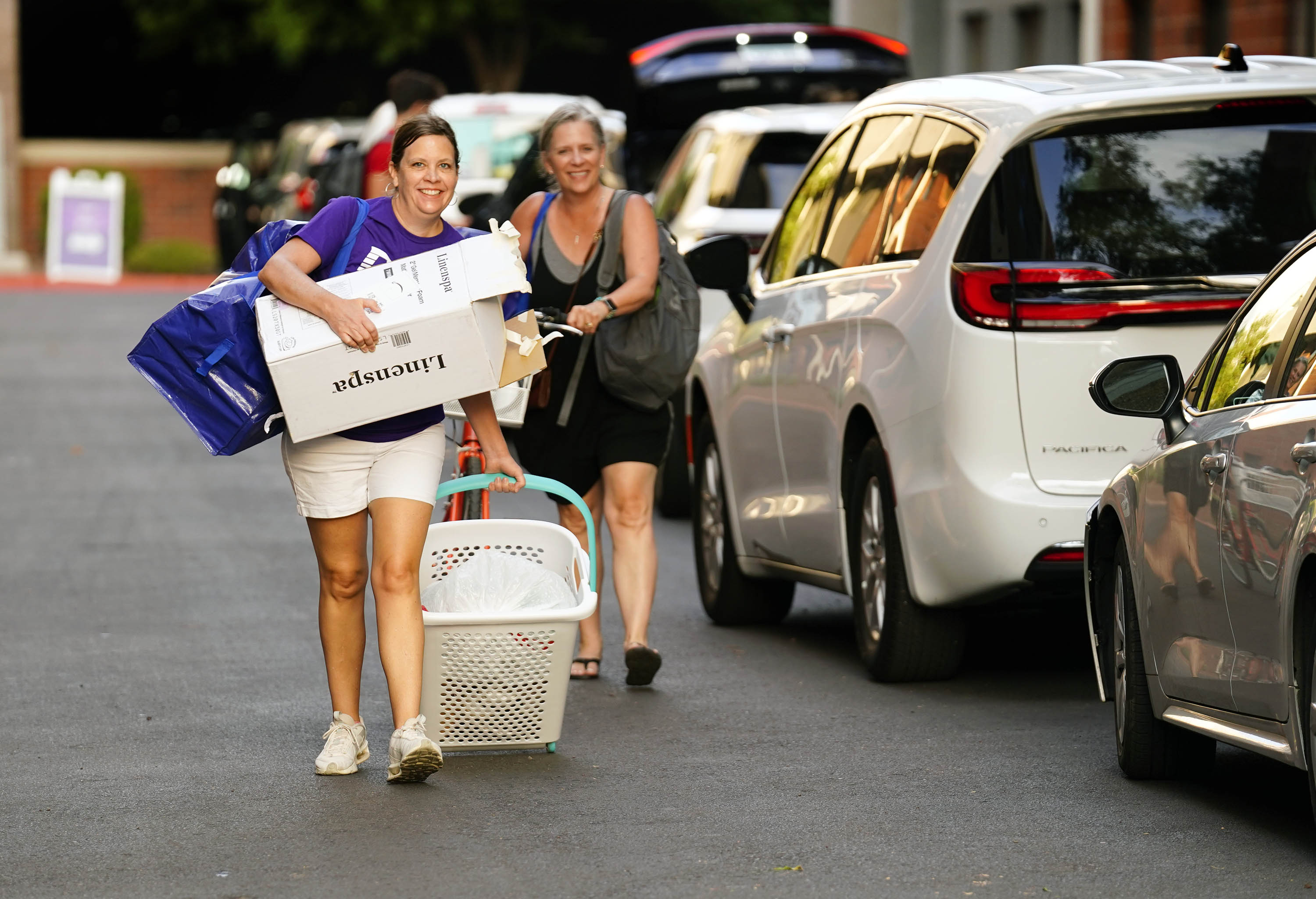 Among some of the first to arrive on campus, parents help their freshmen children move their belongings during Welcome Week’s Monday student move-in on Aug. 25, 2025. -