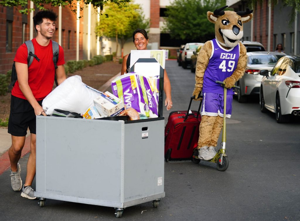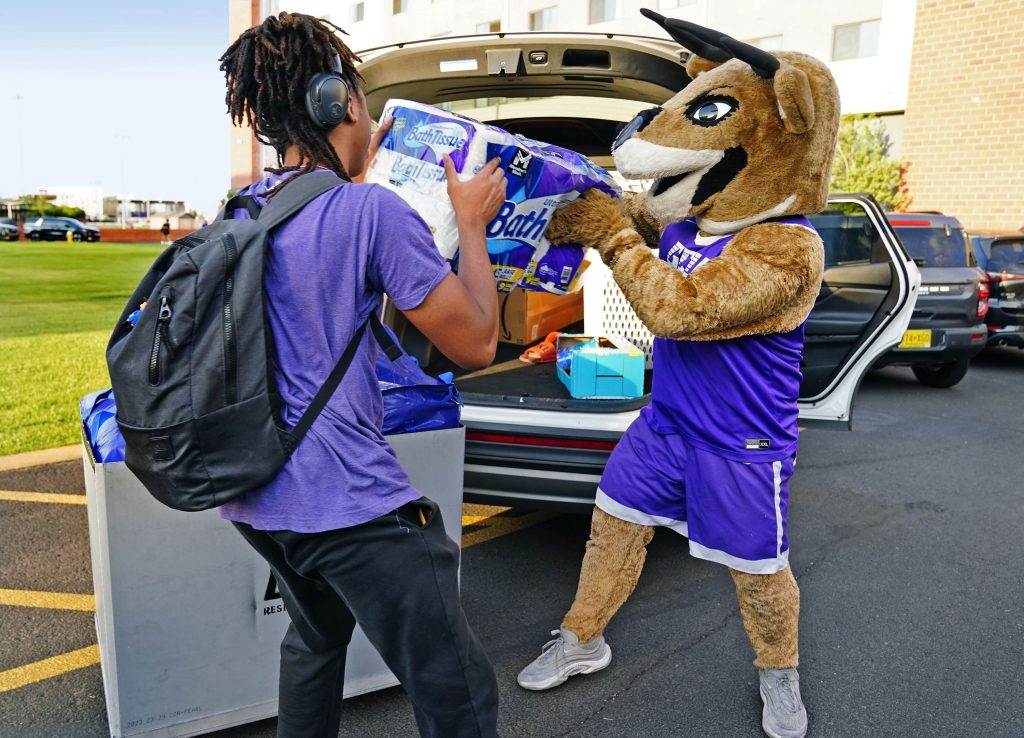 Thunder lends a hand unloading a student’s vehicle during Welcome Week’s Monday student move-in on Aug. 25, 2025. -