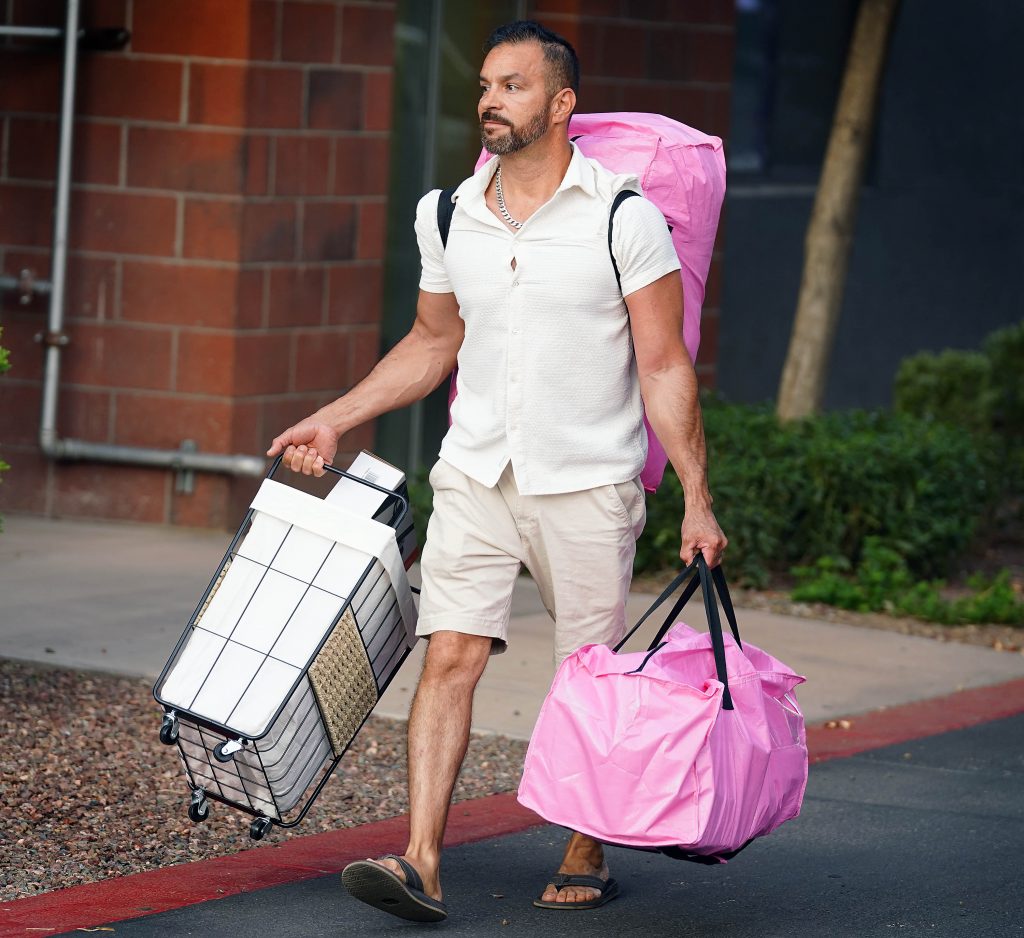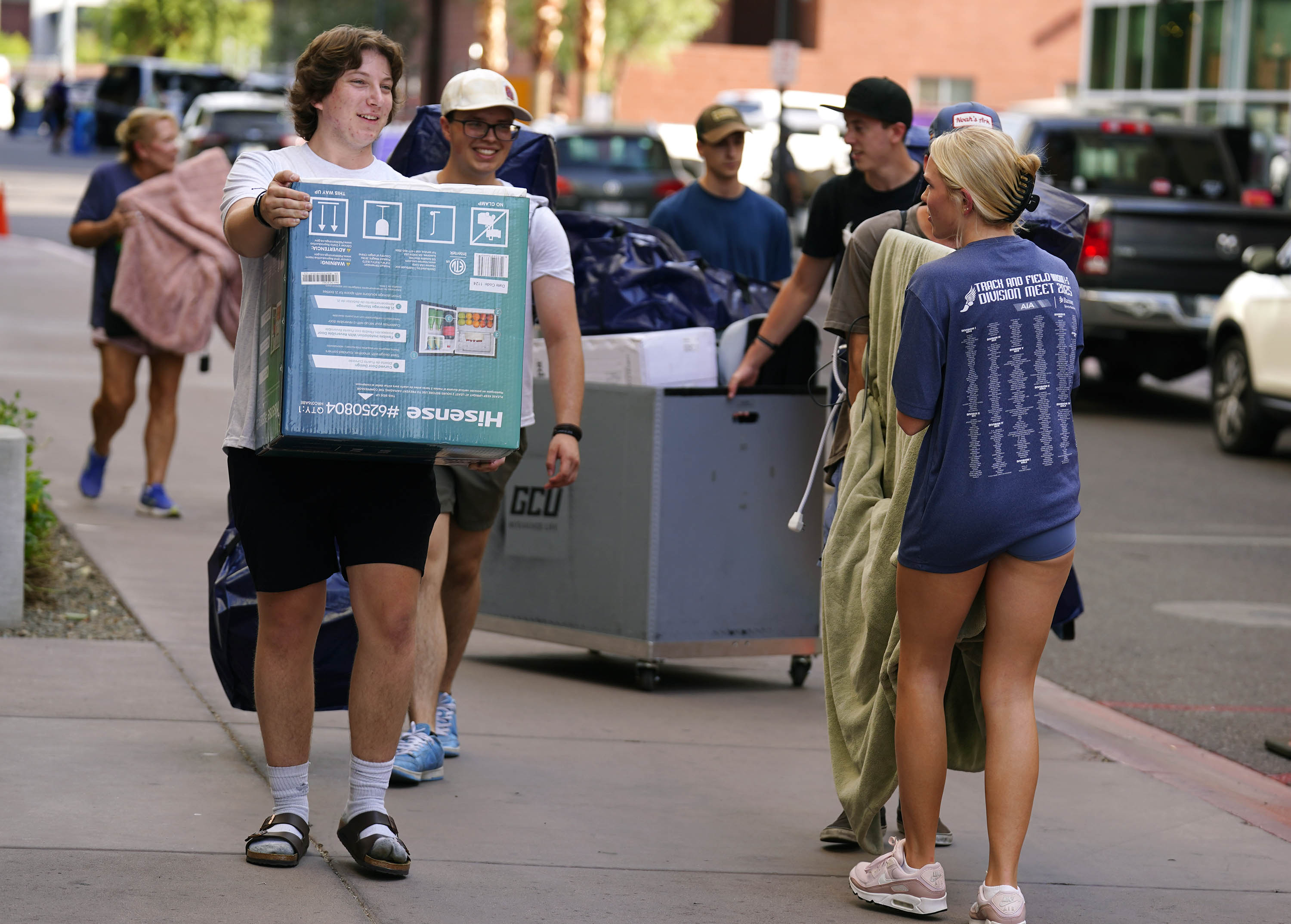 Students carry their belongings to their apartment during Welcome Week’s Monday student move-in on Aug. 25, 2025. -