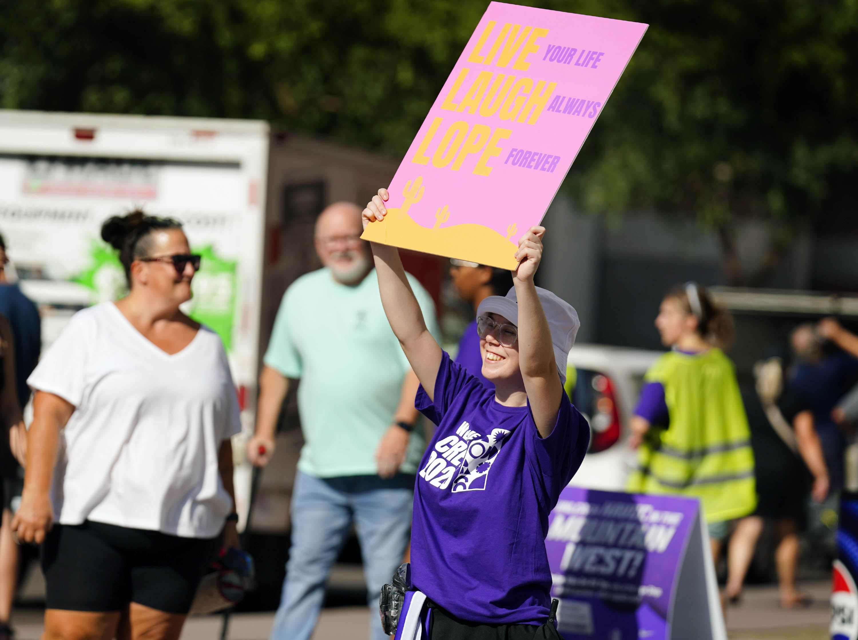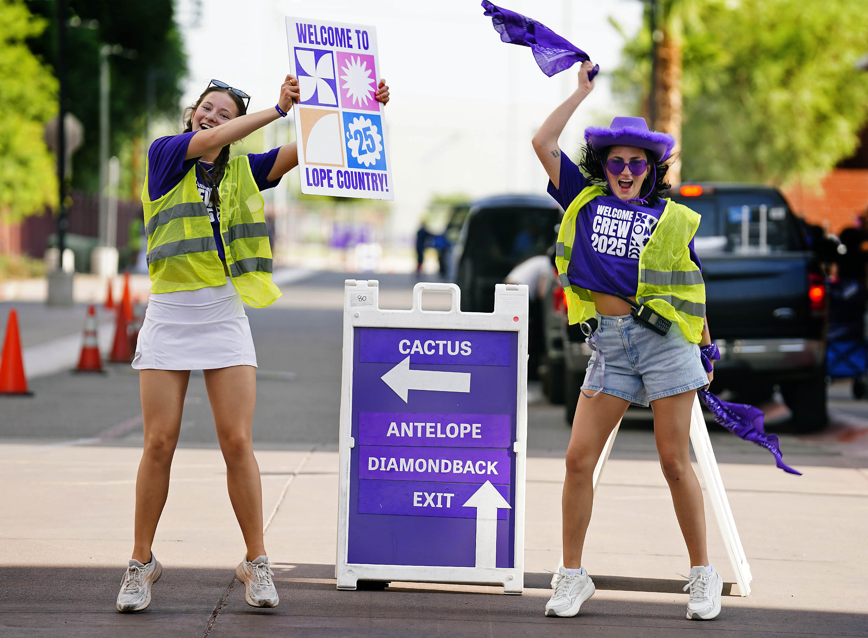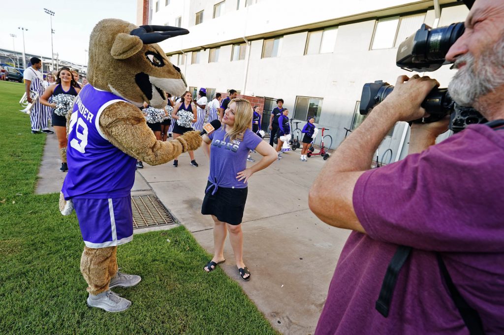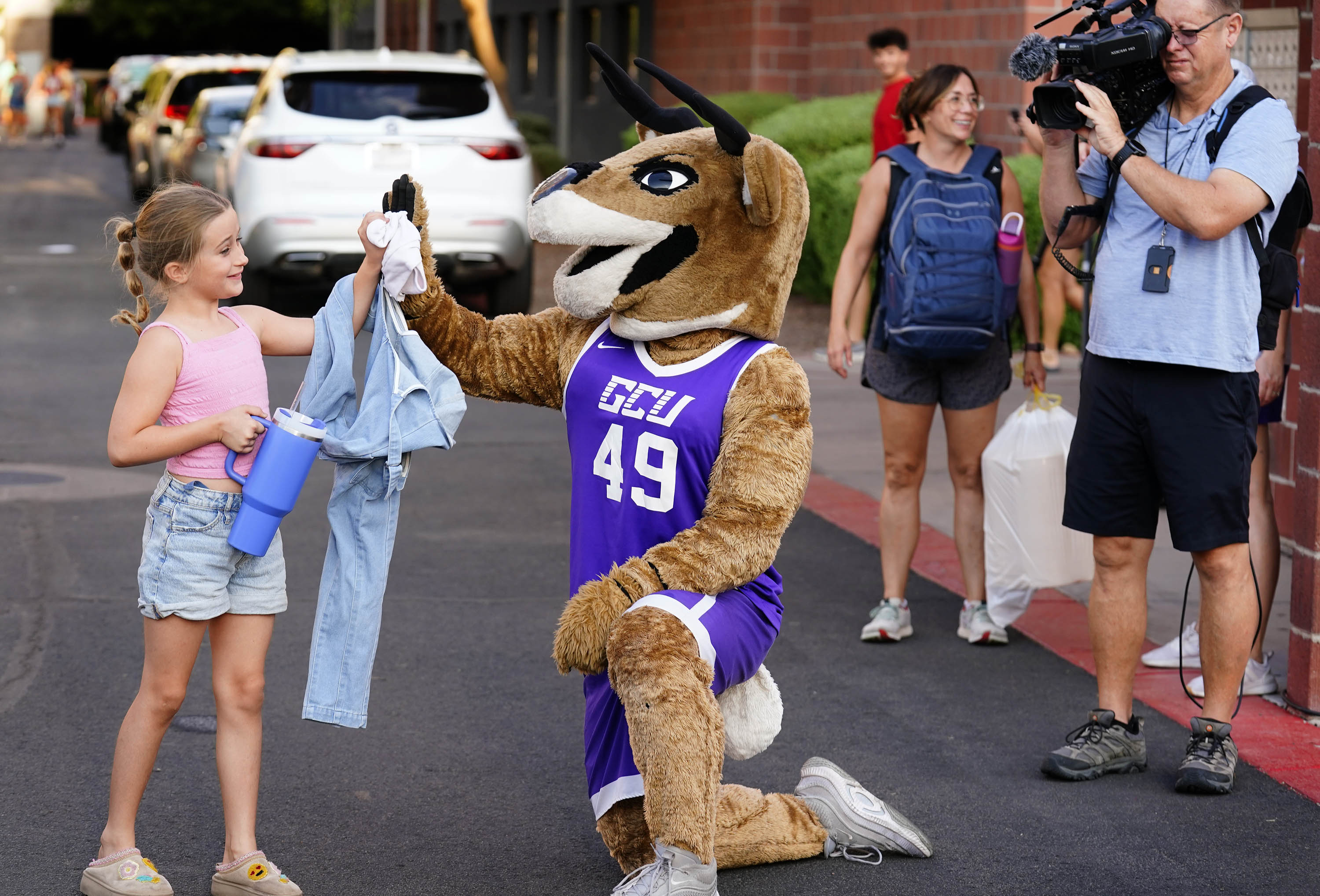 Thunder flips the script and interviews AZ Family’s Kylee Cruz at the Grove during Welcome Week’s Monday student move-in on Aug. 25, 2025. -