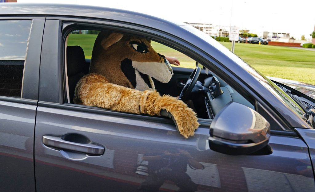 Thunder catches a ride with a parent during Welcome Week’s Monday student move-in on Aug. 25, 2025. -