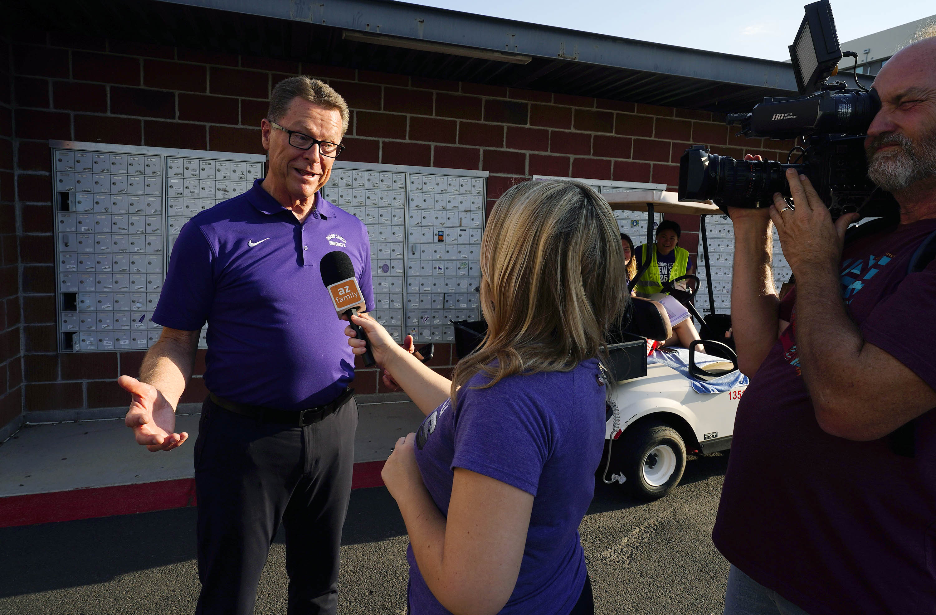 University Provost Dr. Randy Gibb speaks with Fox News 10 during Welcome Week’s Monday student move-in on Aug. 25, 2025. -