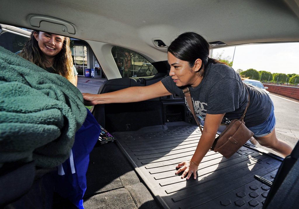 Parents and students unload their vehicle at the Grove during Welcome Week’s Monday student move-in on Aug. 25, 2025. -