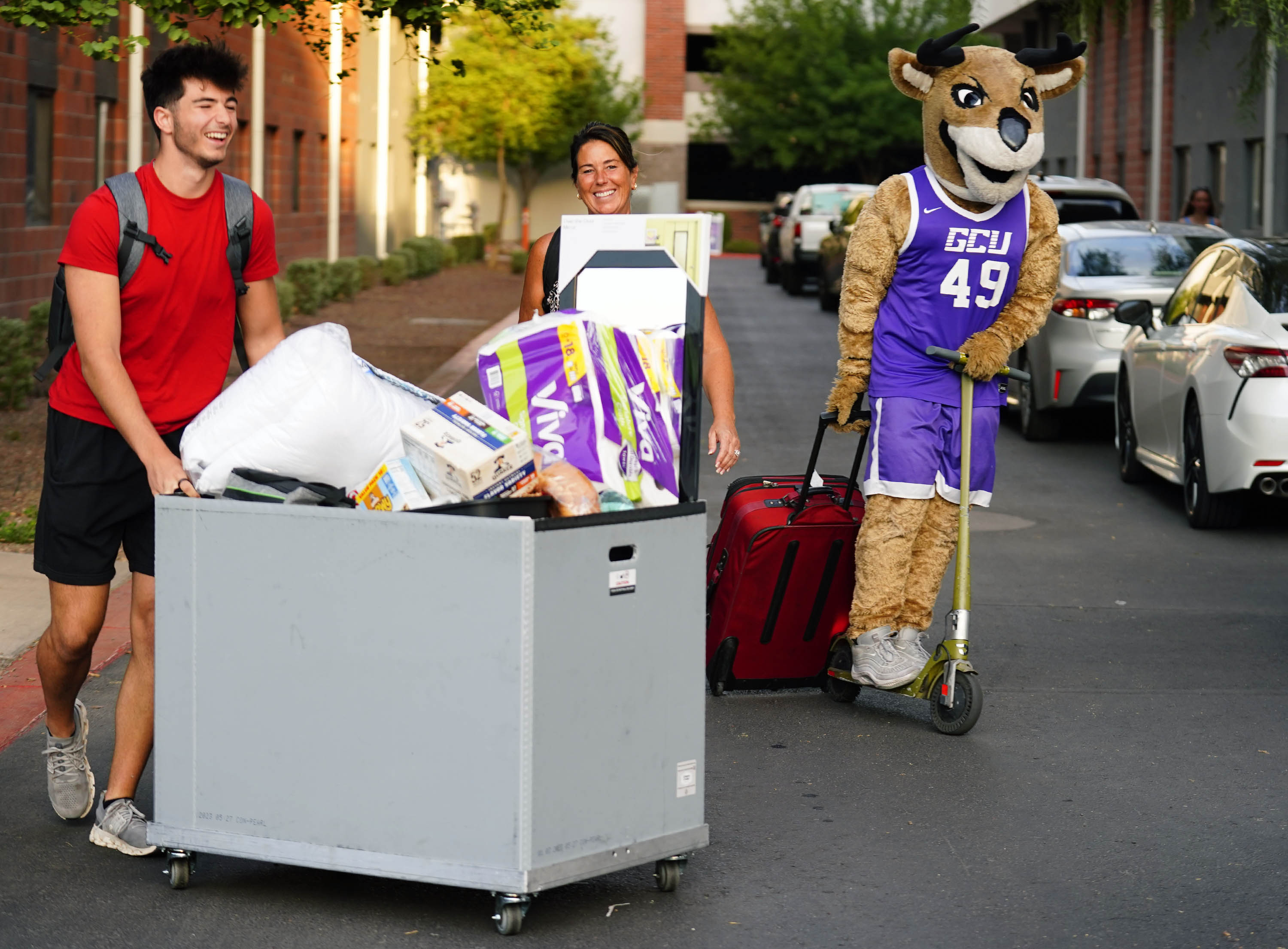 Students carry their belongings to the Grove’s Juniper Hall during Welcome Week’s Monday student move-in on Aug. 25, 2025. -