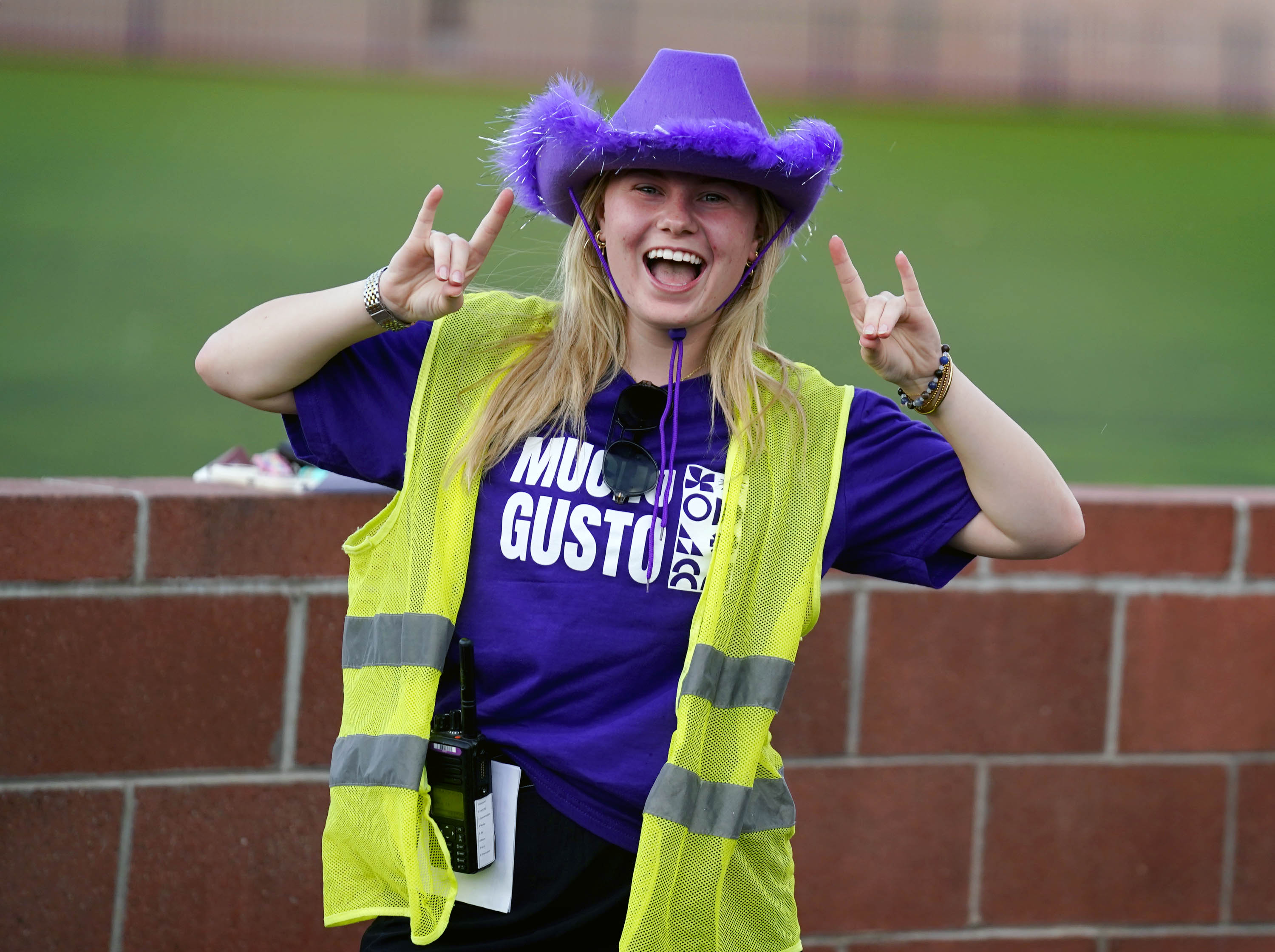 A Welcome Crew member at the Grove during Welcome Week’s Monday student move-in on Aug. 25, 2025.