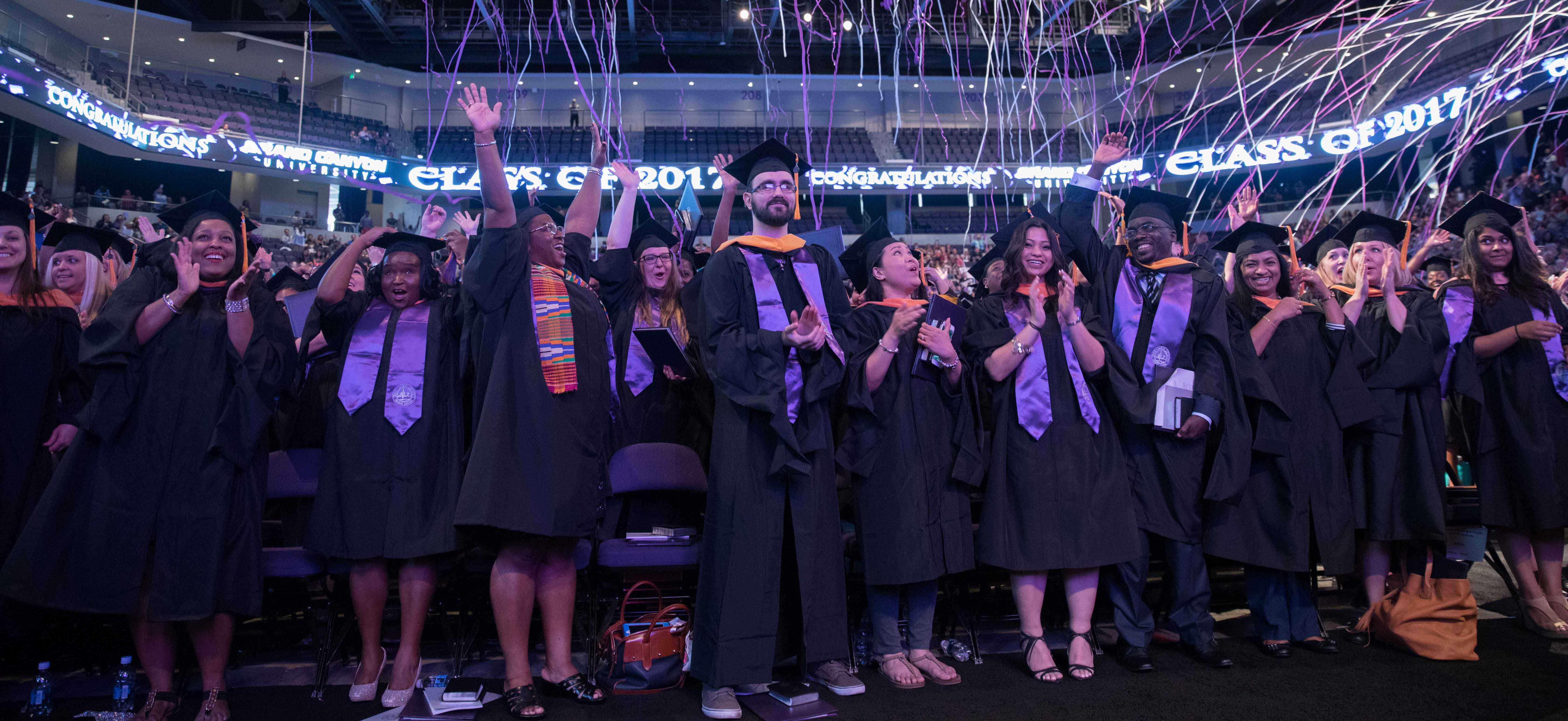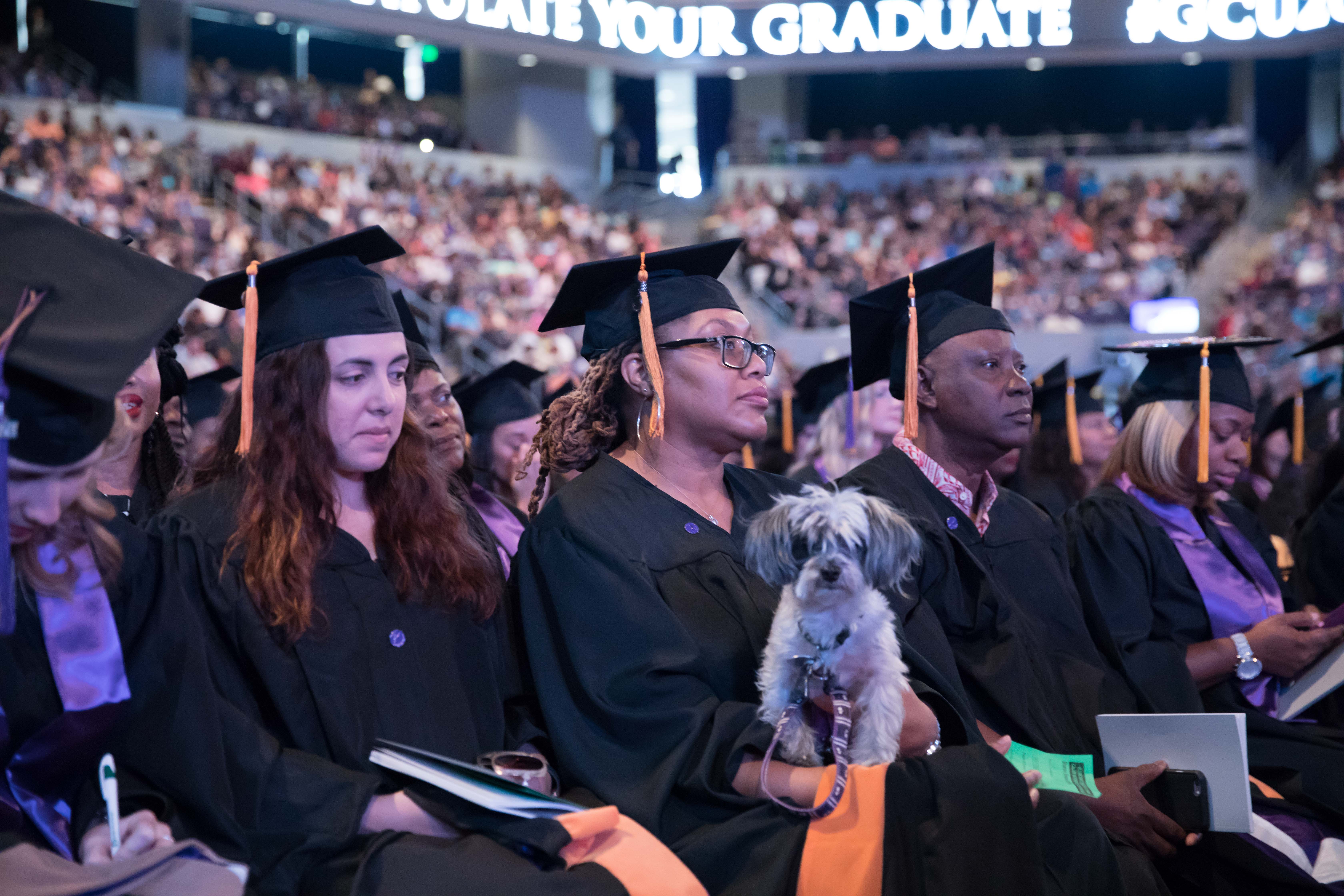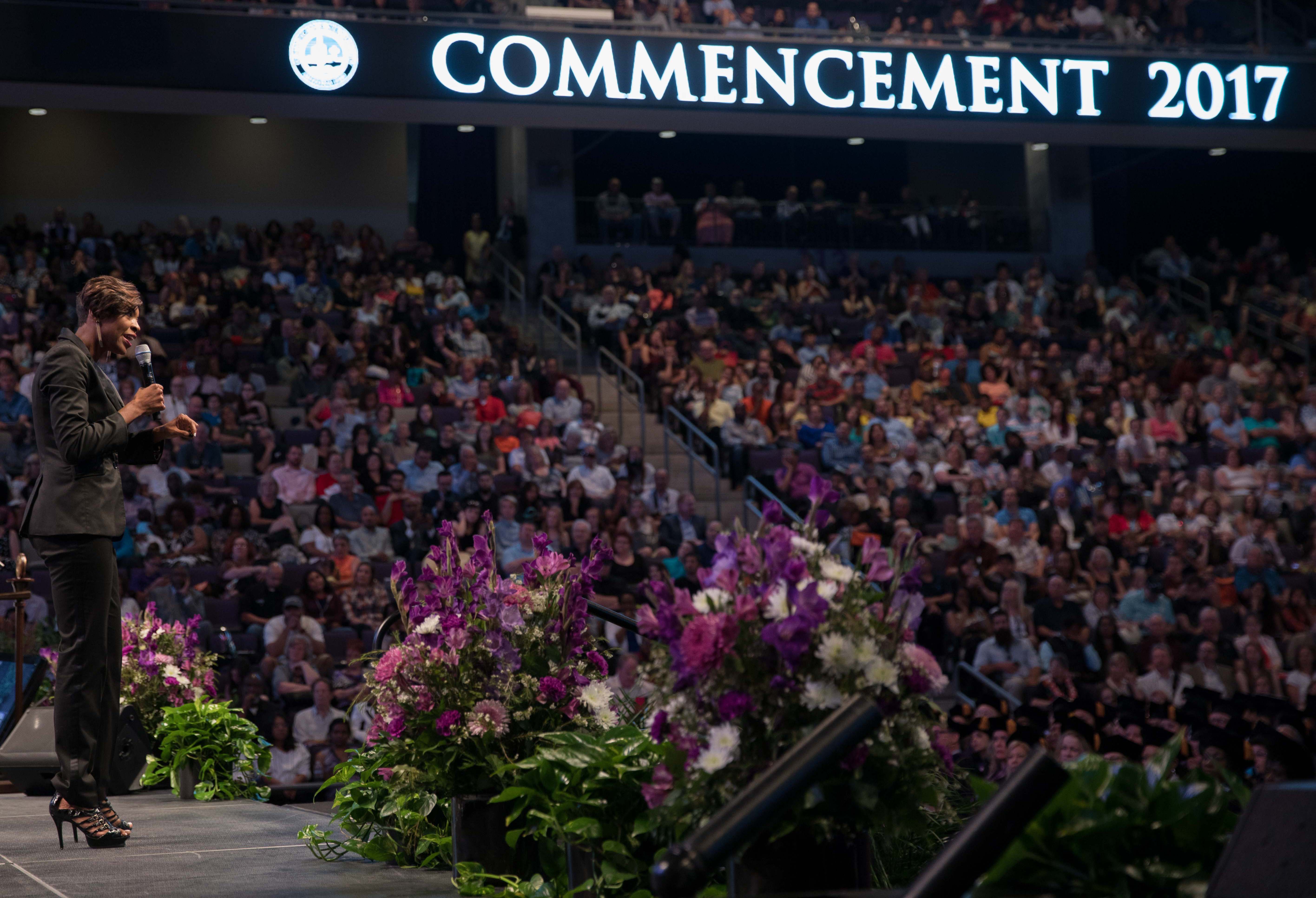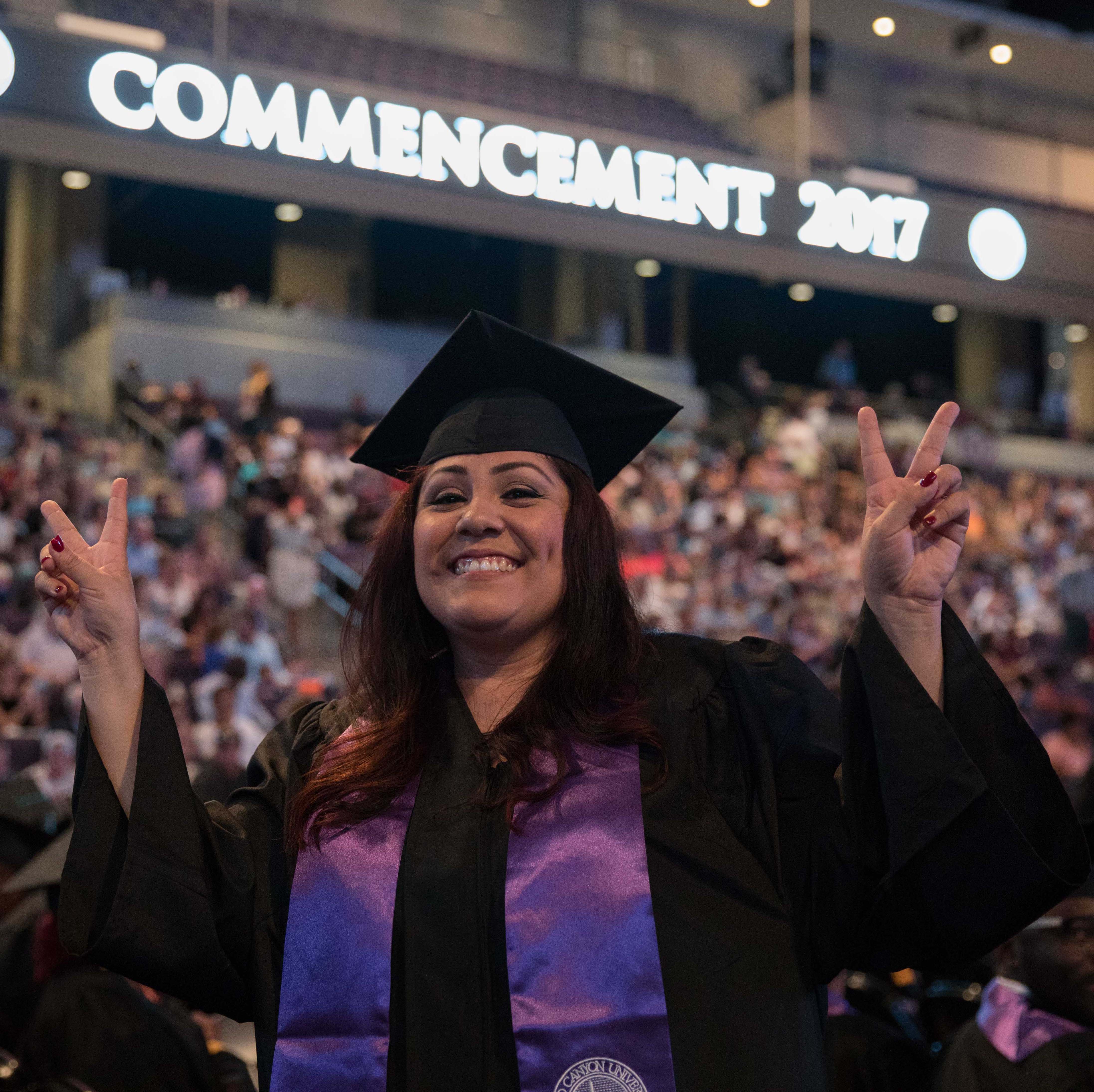 Online students in the College of Doctoral Studies, College of Humanities and Social Sciences and College of Nursing and Health Care Professions received their degrees Friday in two separate ceremonies at GCU Arena. Classic pianist Jade Simmons delivered the keynote address for each ceremony, and Dr. Tim Griffin, GCU's pastor and dean of students, and GCU President Brian Mueller were among the speakers.