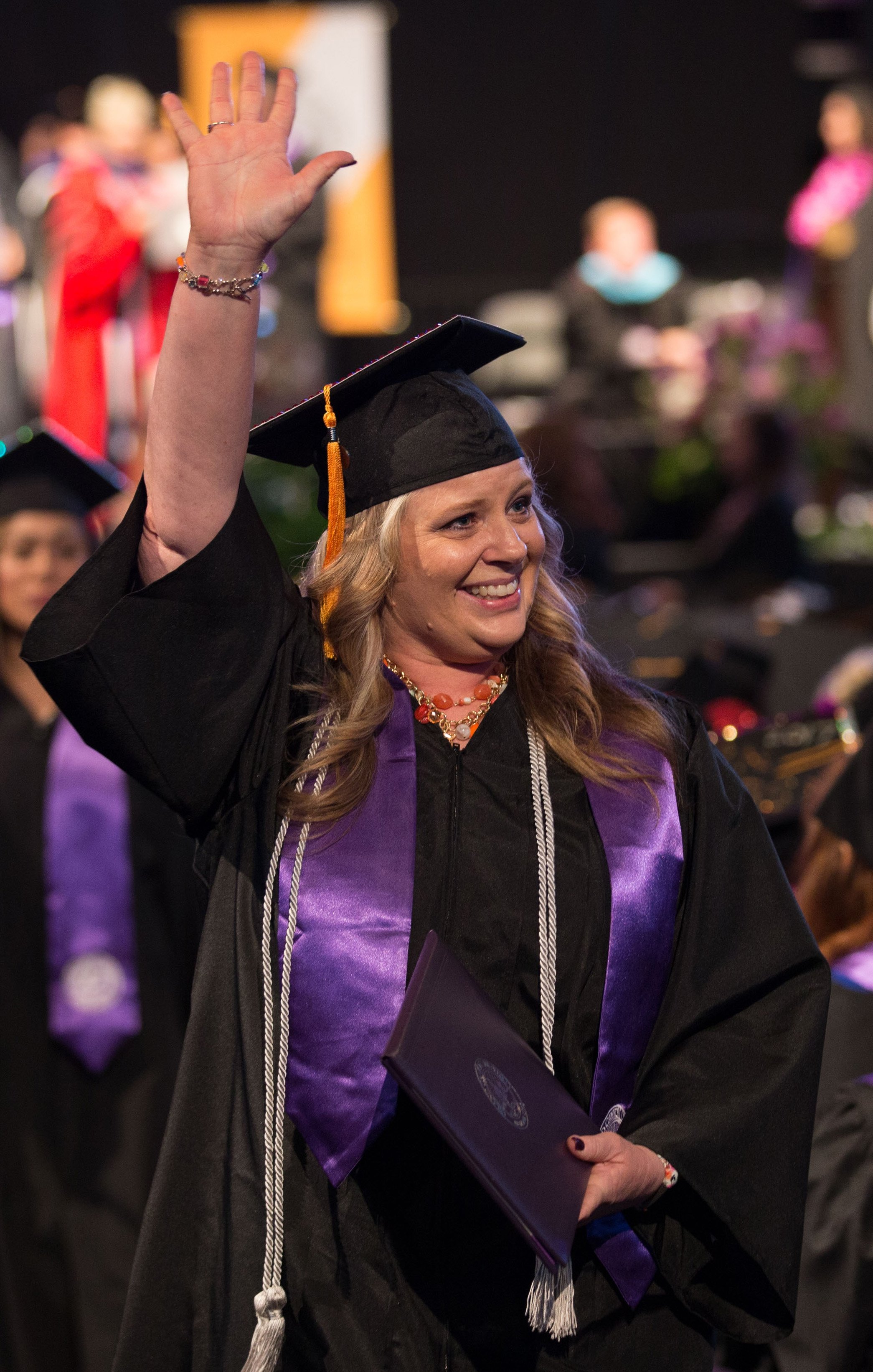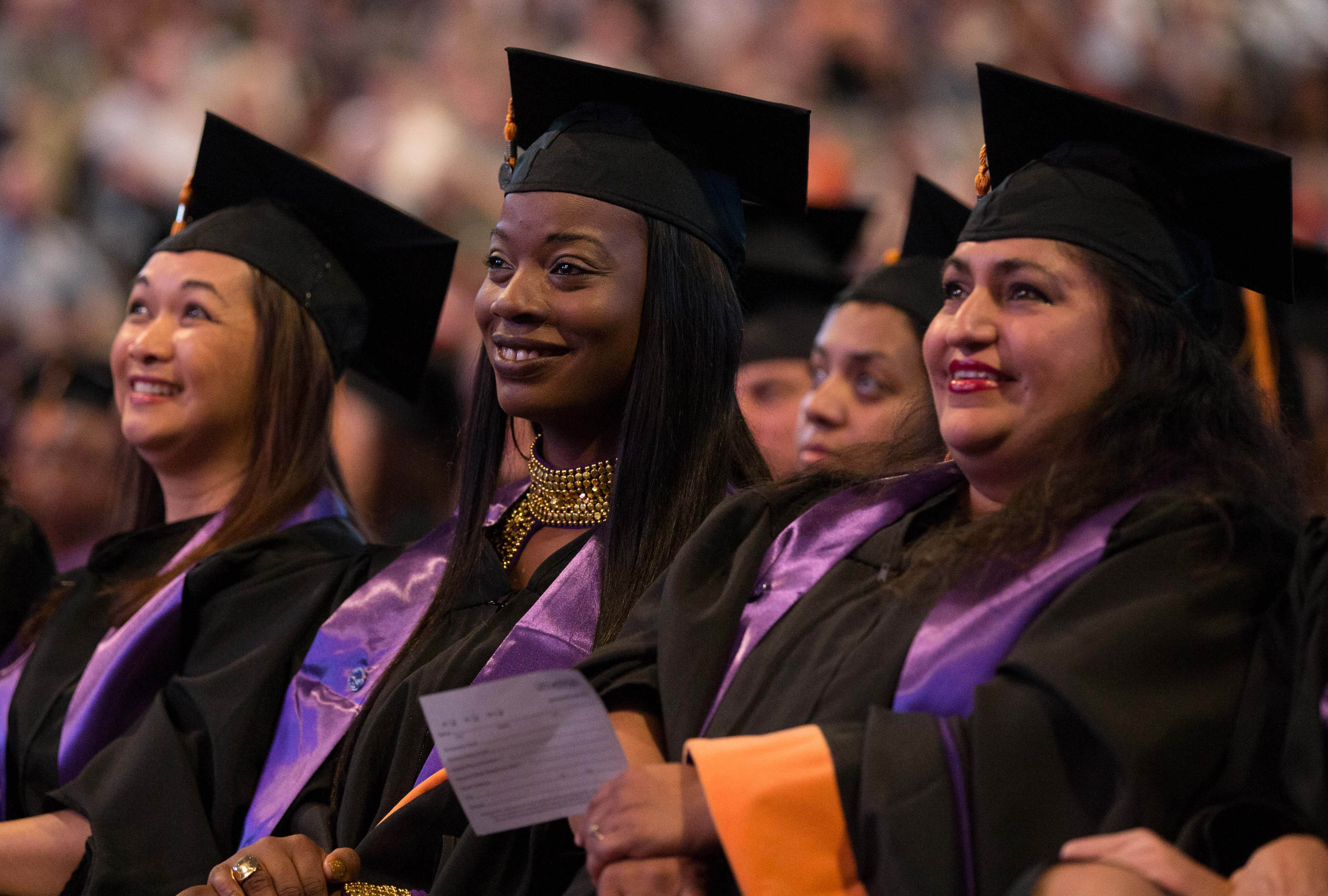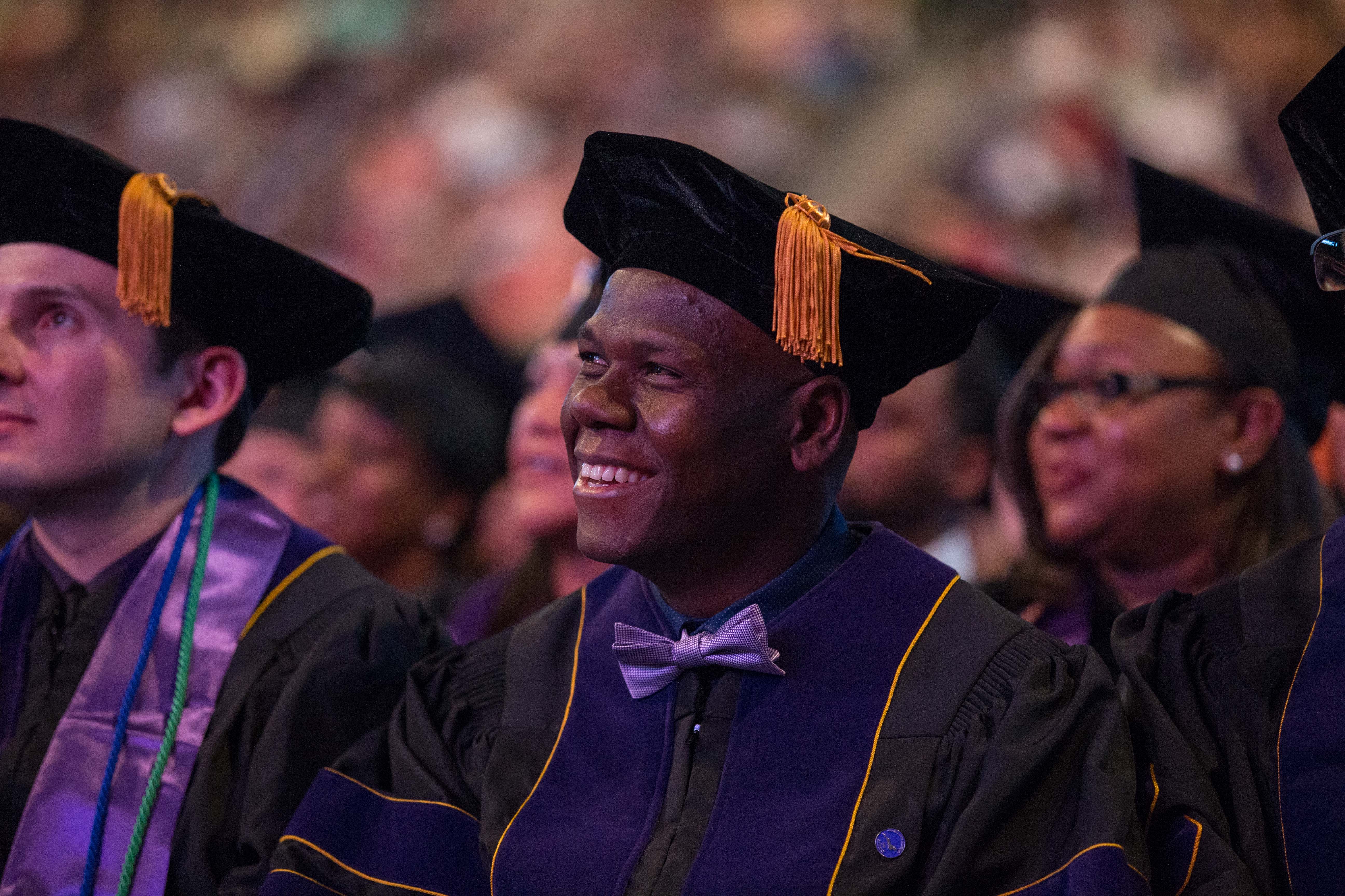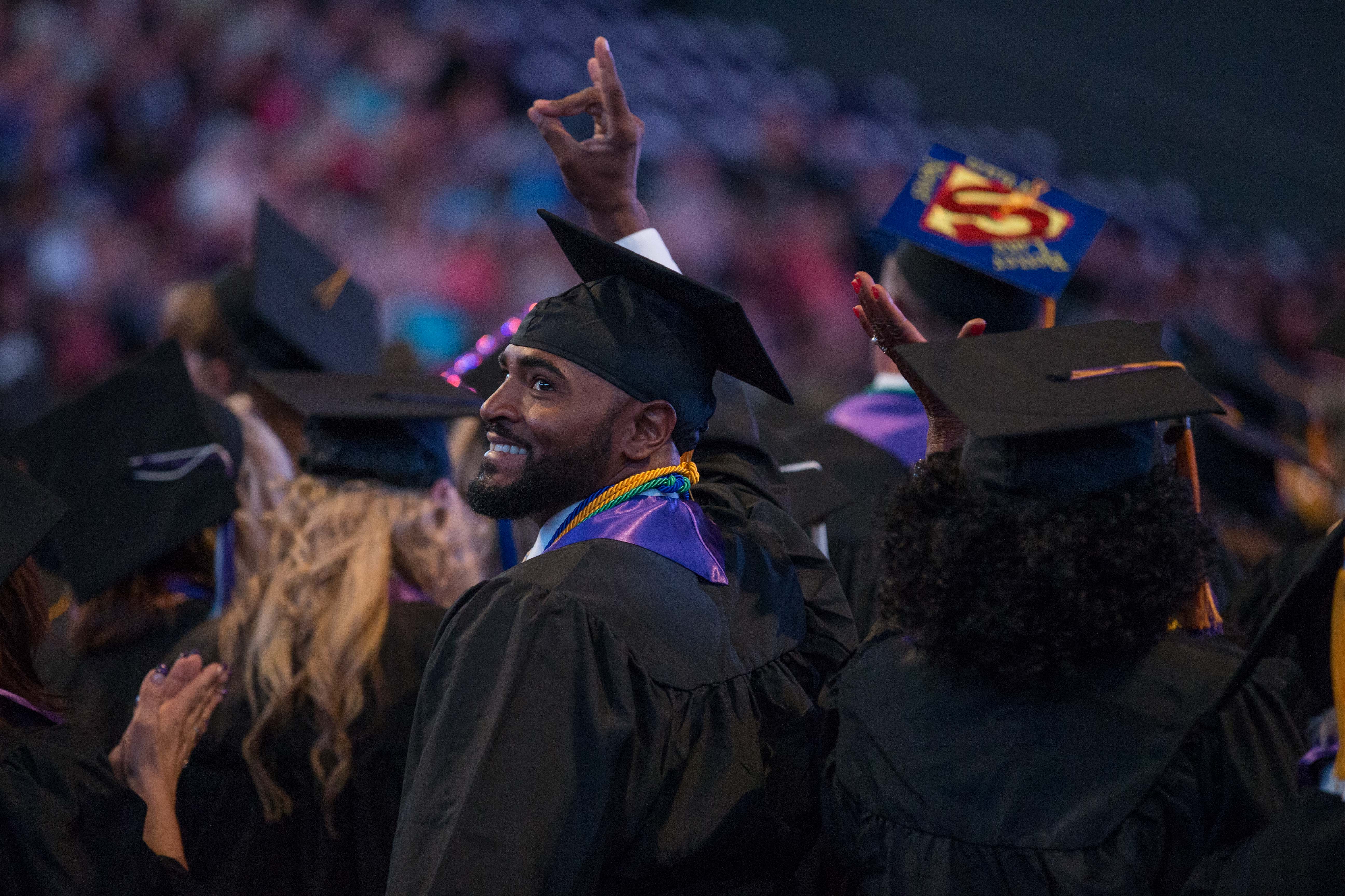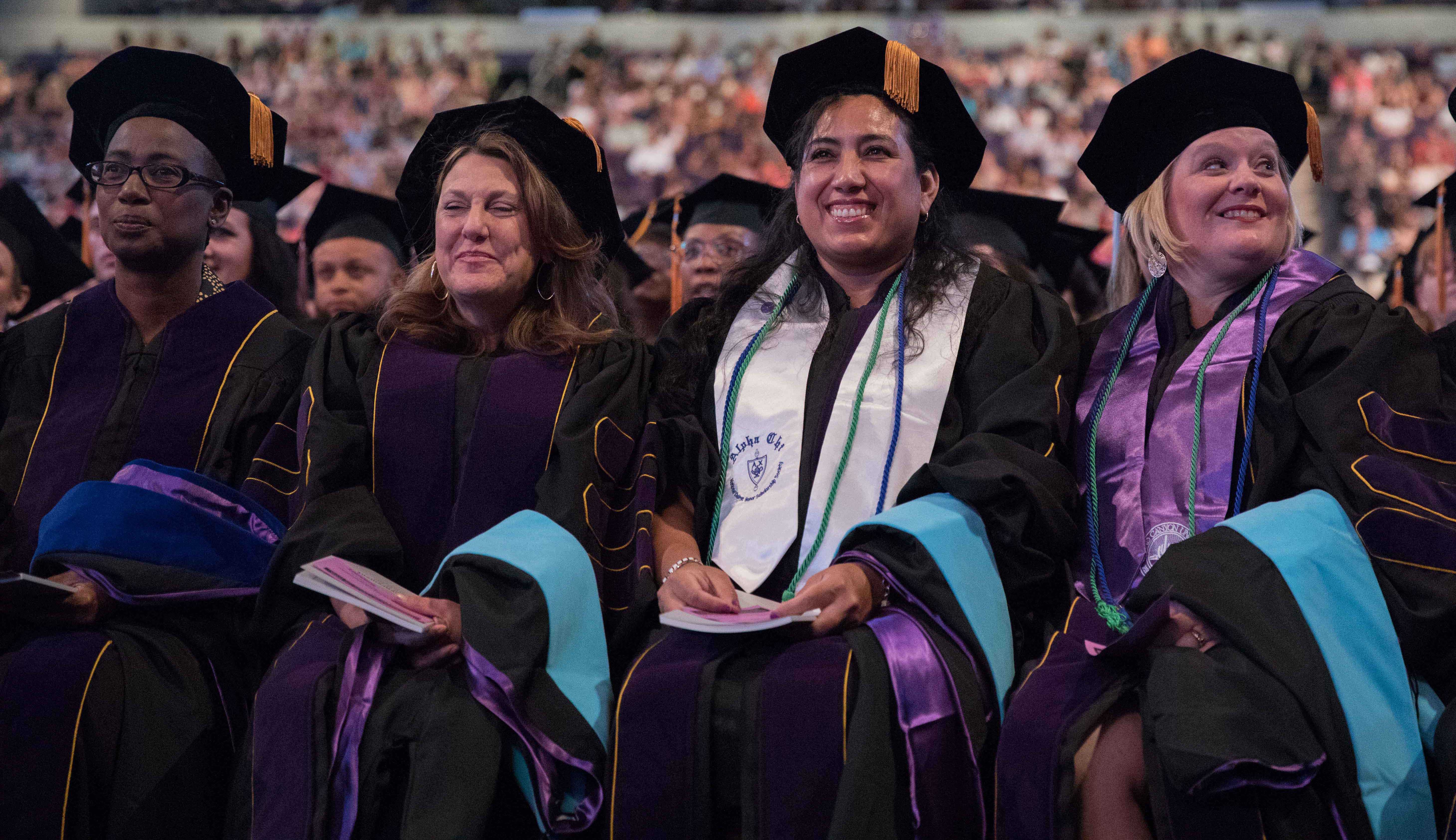 Online students in the College of Doctoral Studies, College of Humanities and Social Sciences and College of Nursing and Health Care Professions received their degrees Friday in two separate ceremonies at GCU Arena. Classic pianist Jade Simmons delivered the keynote address for each ceremony, and Dr. Tim Griffin, GCU's pastor and dean of students, and GCU President Brian Mueller were among the speakers.