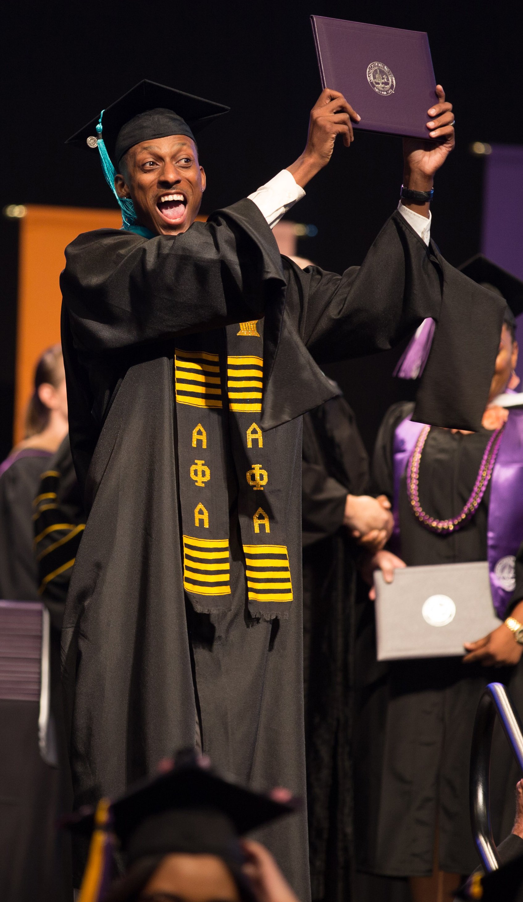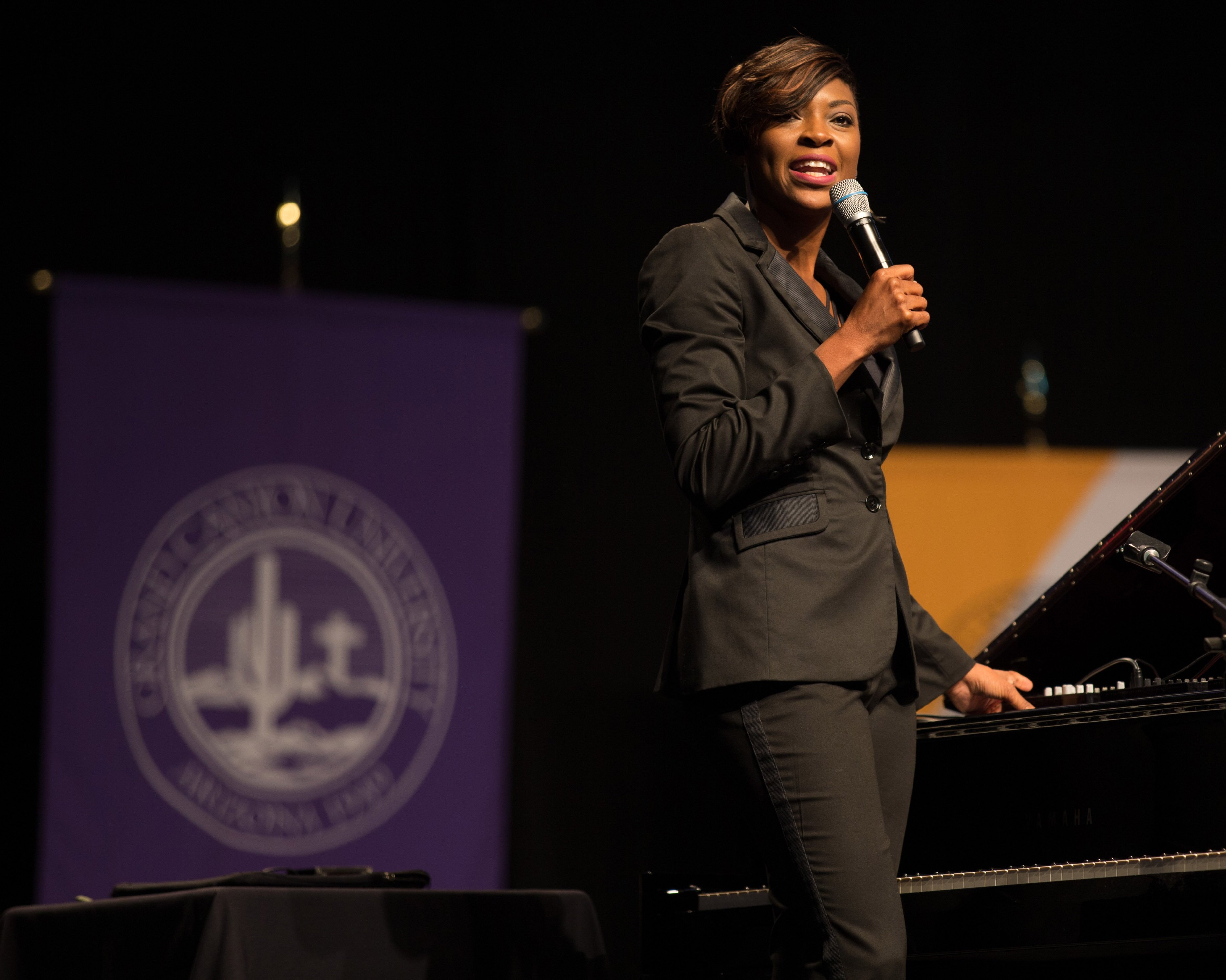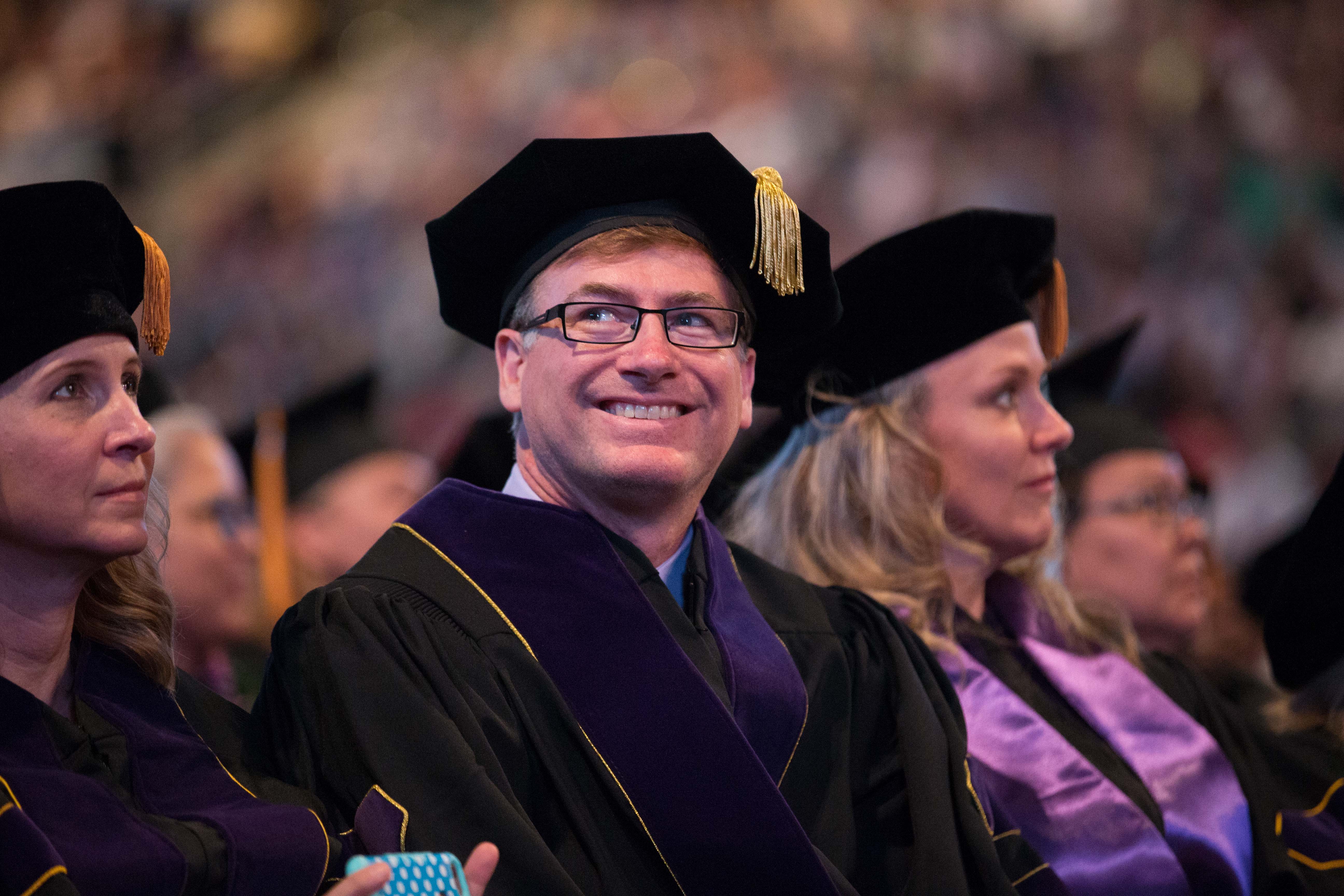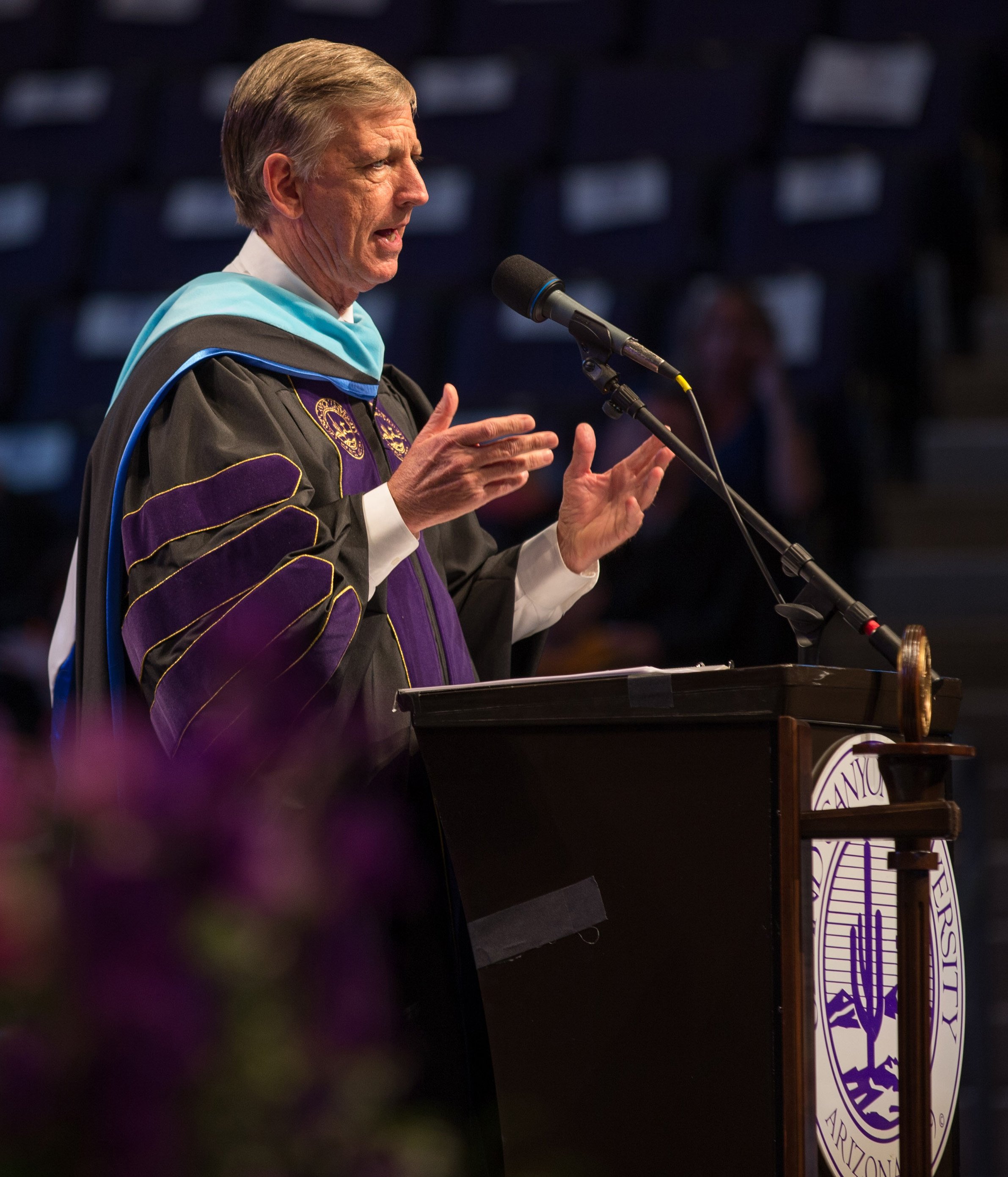 Online students in the College of Doctoral Studies, College of Humanities and Social Sciences and College of Nursing and Health Care Professions received their degrees Friday in two separate ceremonies at GCU Arena. Classic pianist Jade Simmons delivered the keynote address for each ceremony, and Dr. Tim Griffin, GCU's pastor and dean of students, and GCU President Brian Mueller were among the speakers.