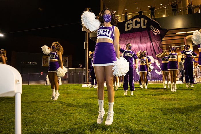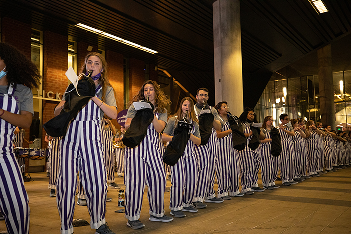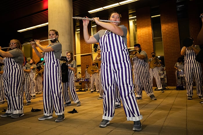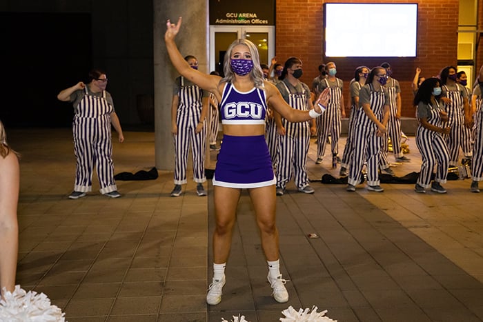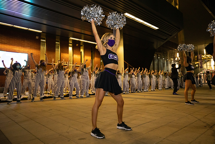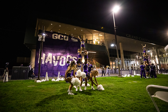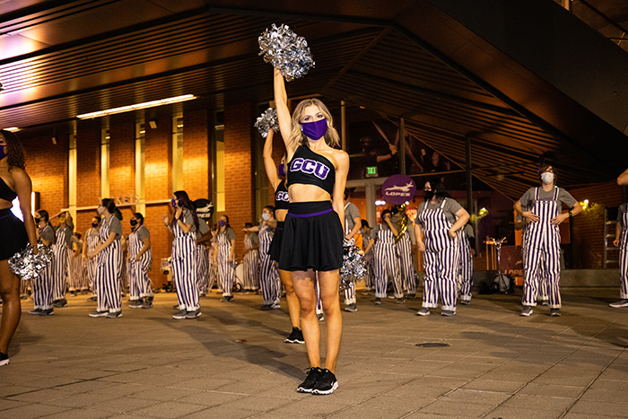 In anticipation of the return of athletics events, the Havocs Hangout brought together students, the Cheer and Dance teams, the Thundering Heard Pep Band and Thunder for a fun event Thursday in the Quad. And, of course, there were T-shirts.