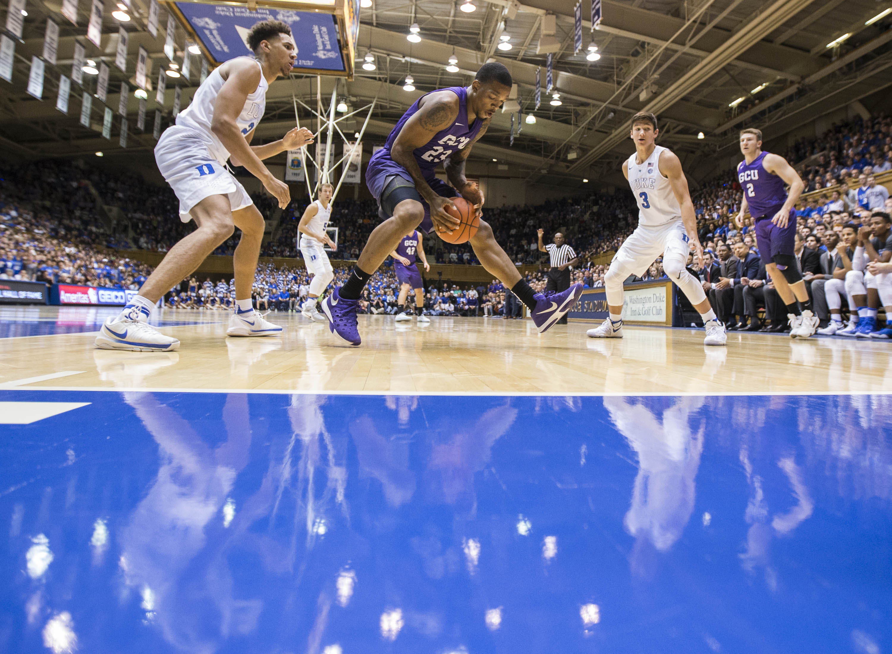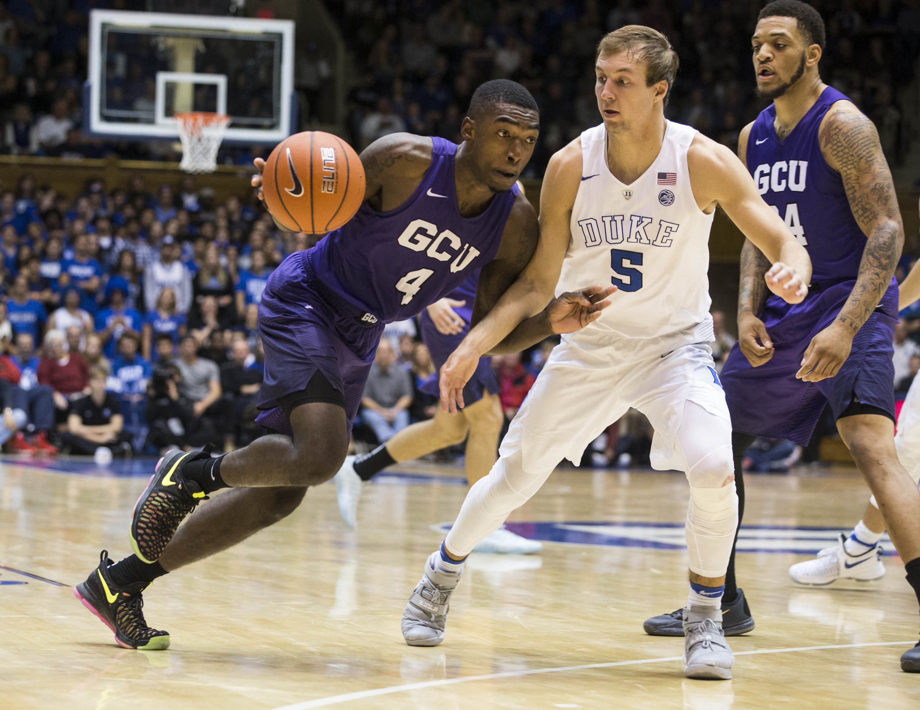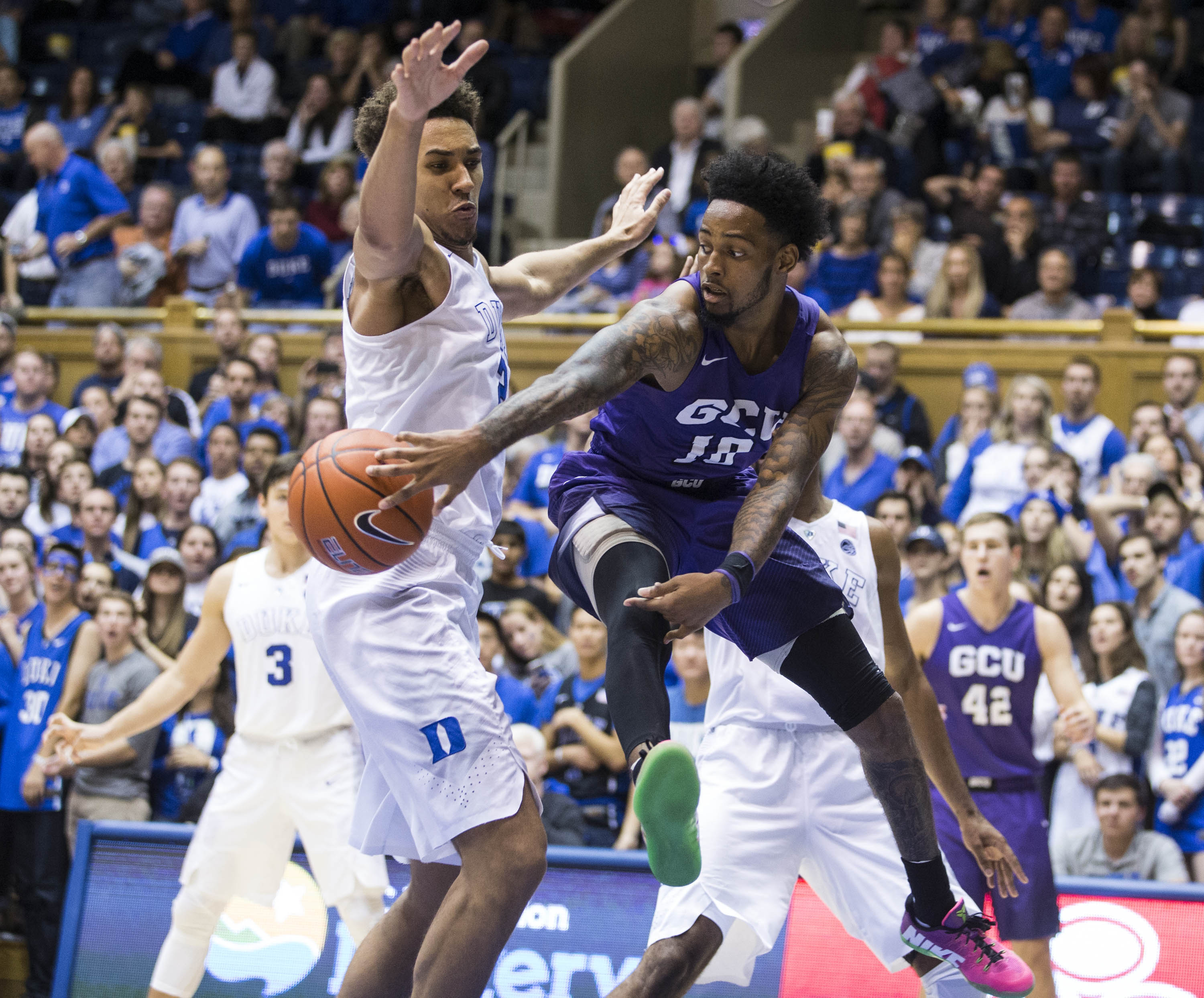 The Lopes showed a lot of heart in their regular-season opener Saturday, taking an early lead over Duke and keeping it close until the No. 1-ranked Blue Devils blew the game open late in the first half and won 96-61. That was Duke’s biggest lead of the game, and it came after GCU cut the margin to 19 in the second half.