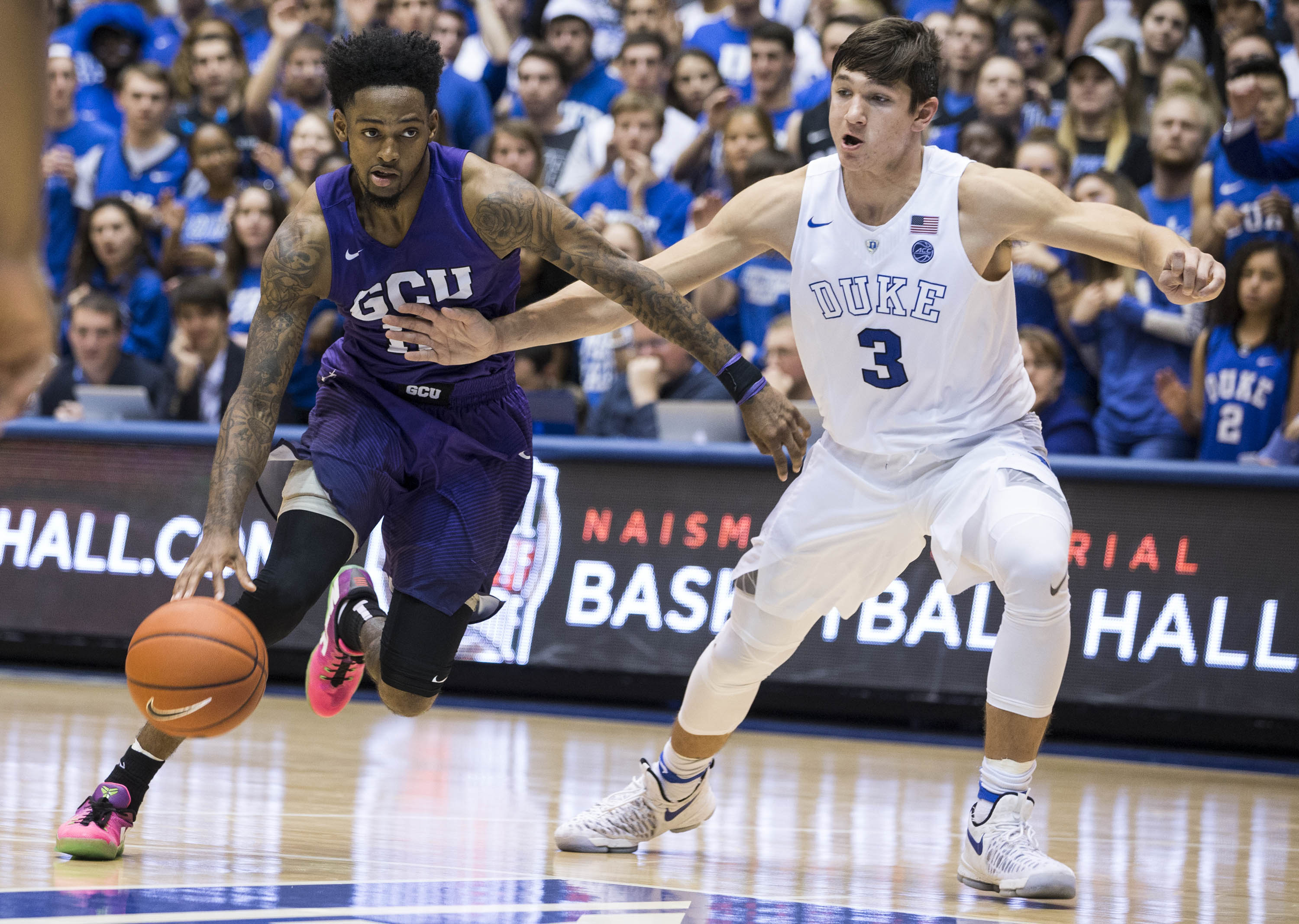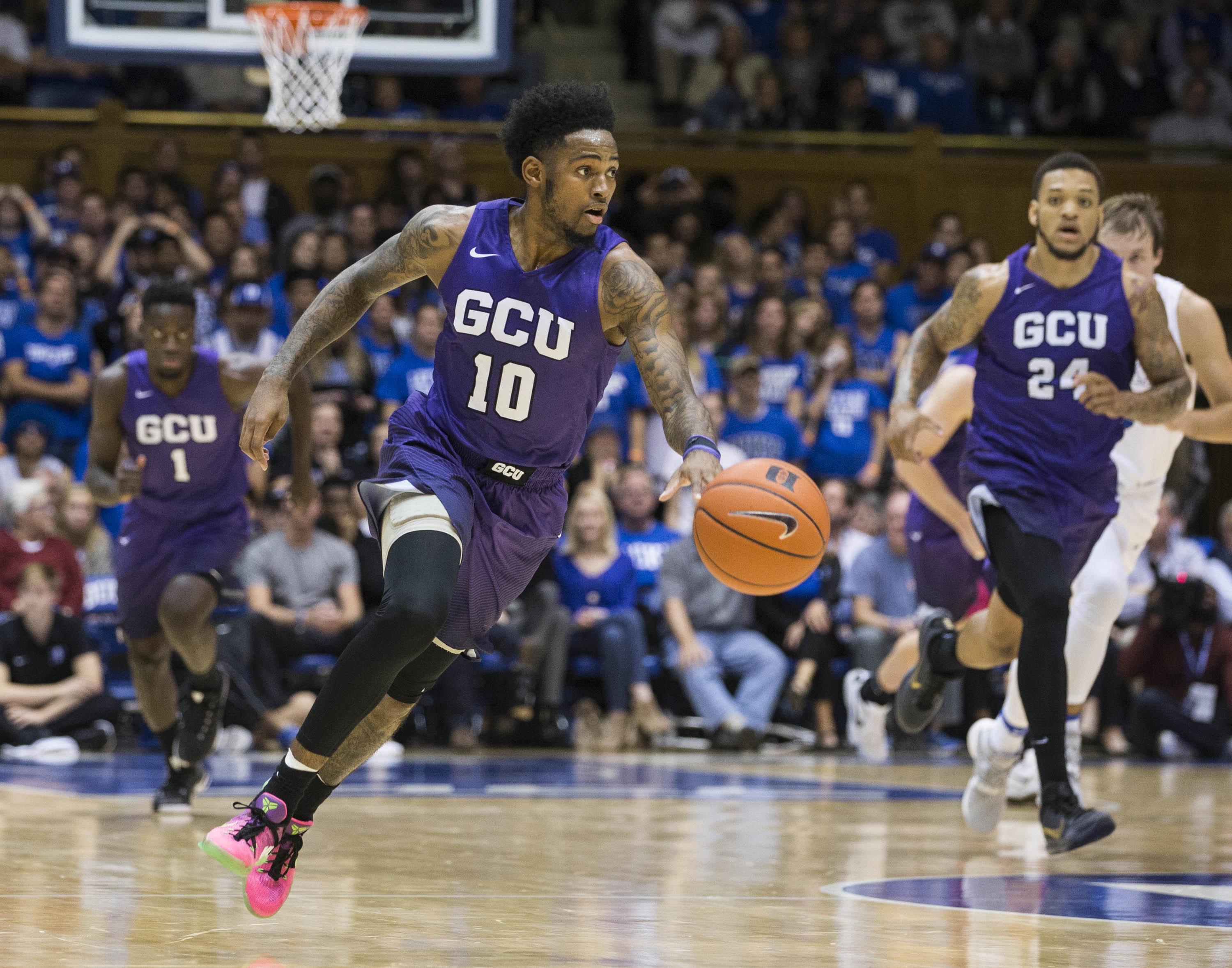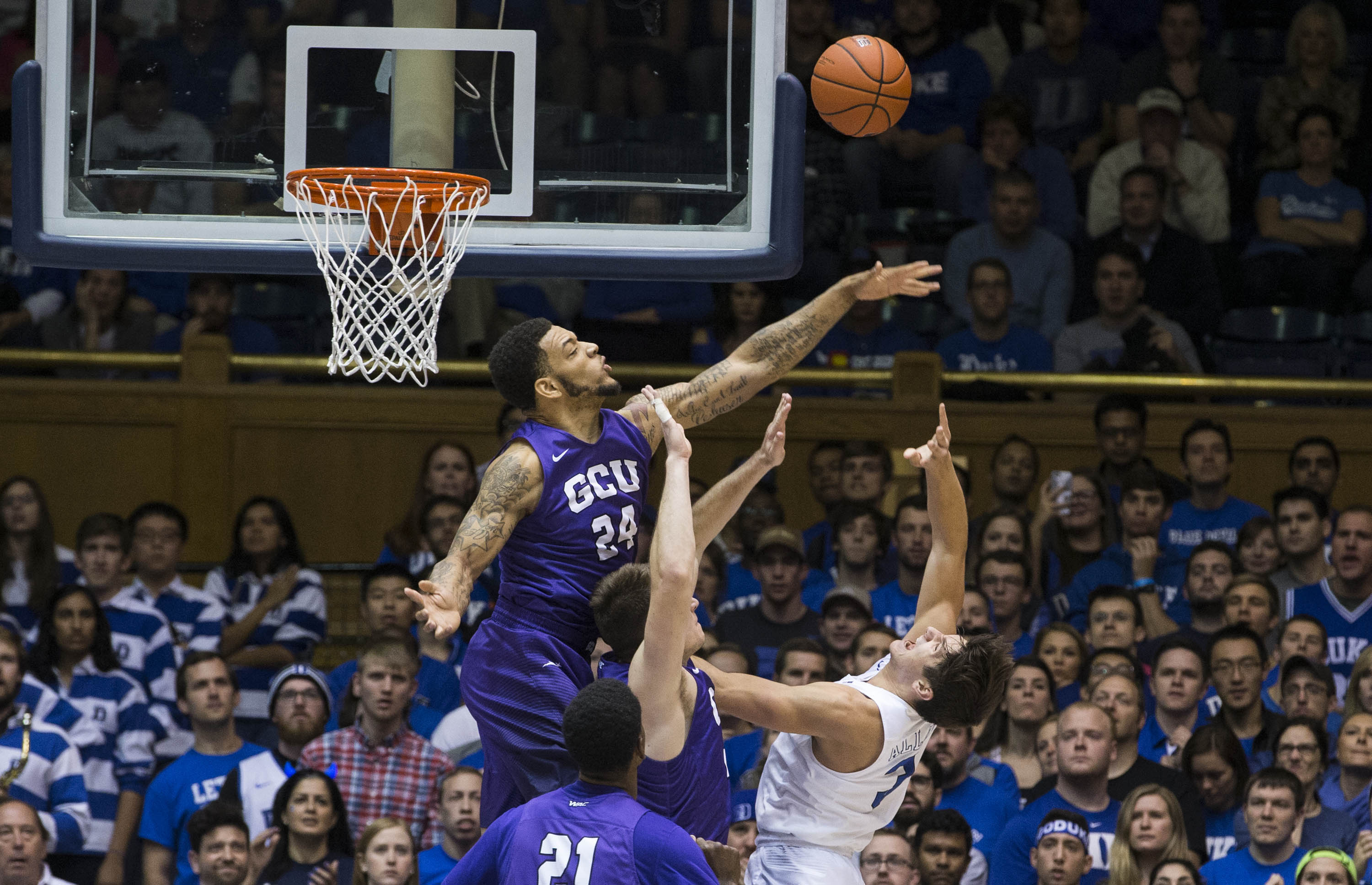 The Lopes showed a lot of heart in their regular-season opener Saturday, taking an early lead over Duke and keeping it close until the No. 1-ranked Blue Devils blew the game open late in the first half and won 96-61. That was Duke’s biggest lead of the game, and it came after GCU cut the margin to 19 in the second half.