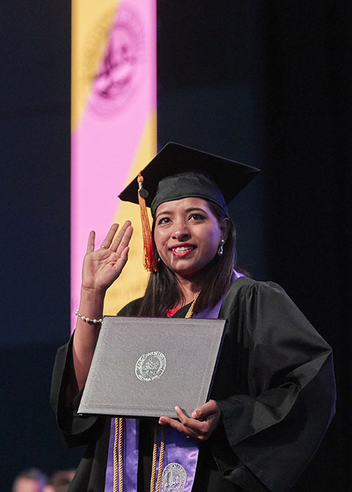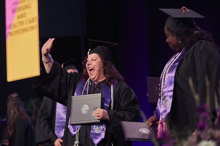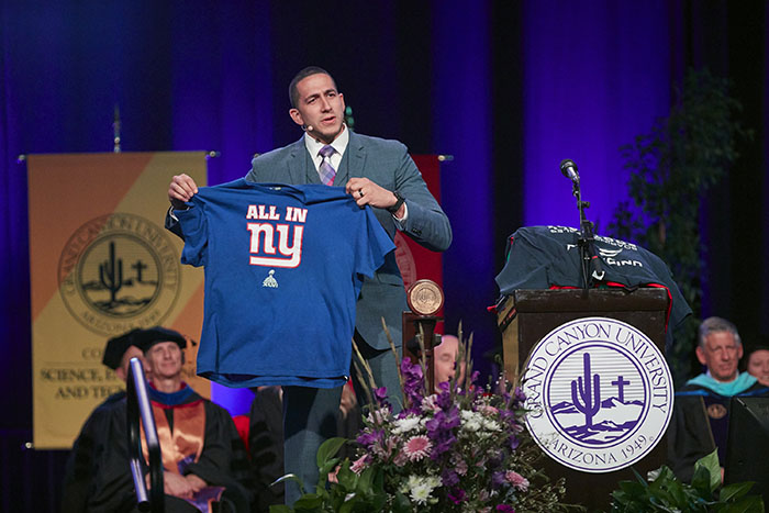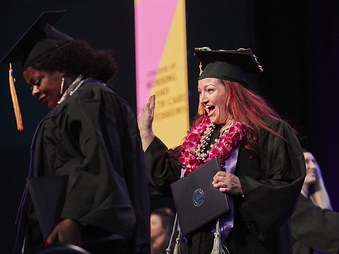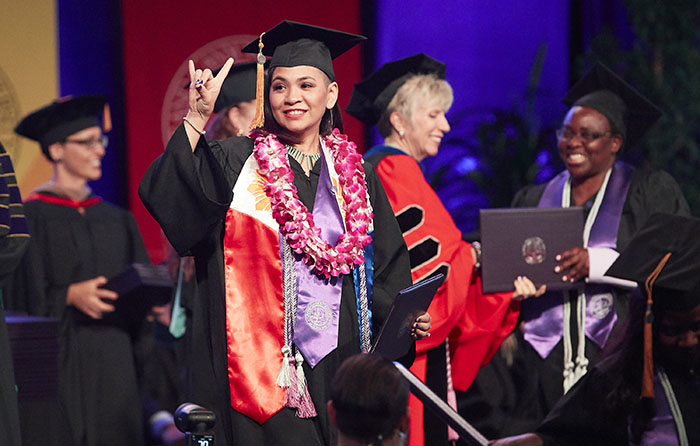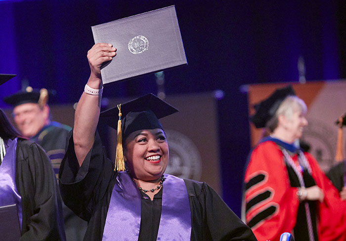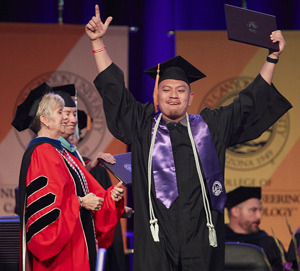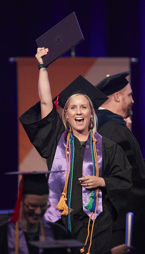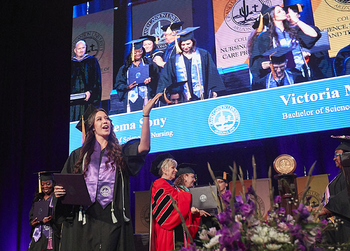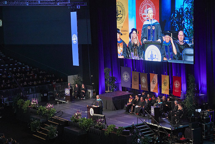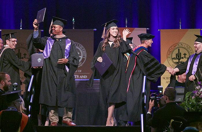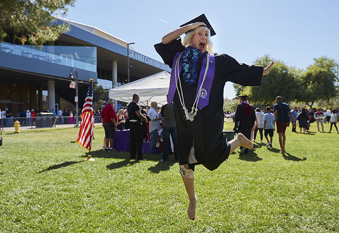 The Friday afternoon ceremony of spring commencement at Grand Canyon University featured 912 online graduates from the Colangelo College of Business, the College of Fine Arts and Production, the College of Nursing and Health Care Professions, the College of Science, Engineering and Technology, and the College of Theology. To watch a replay of the ceremony, click here.