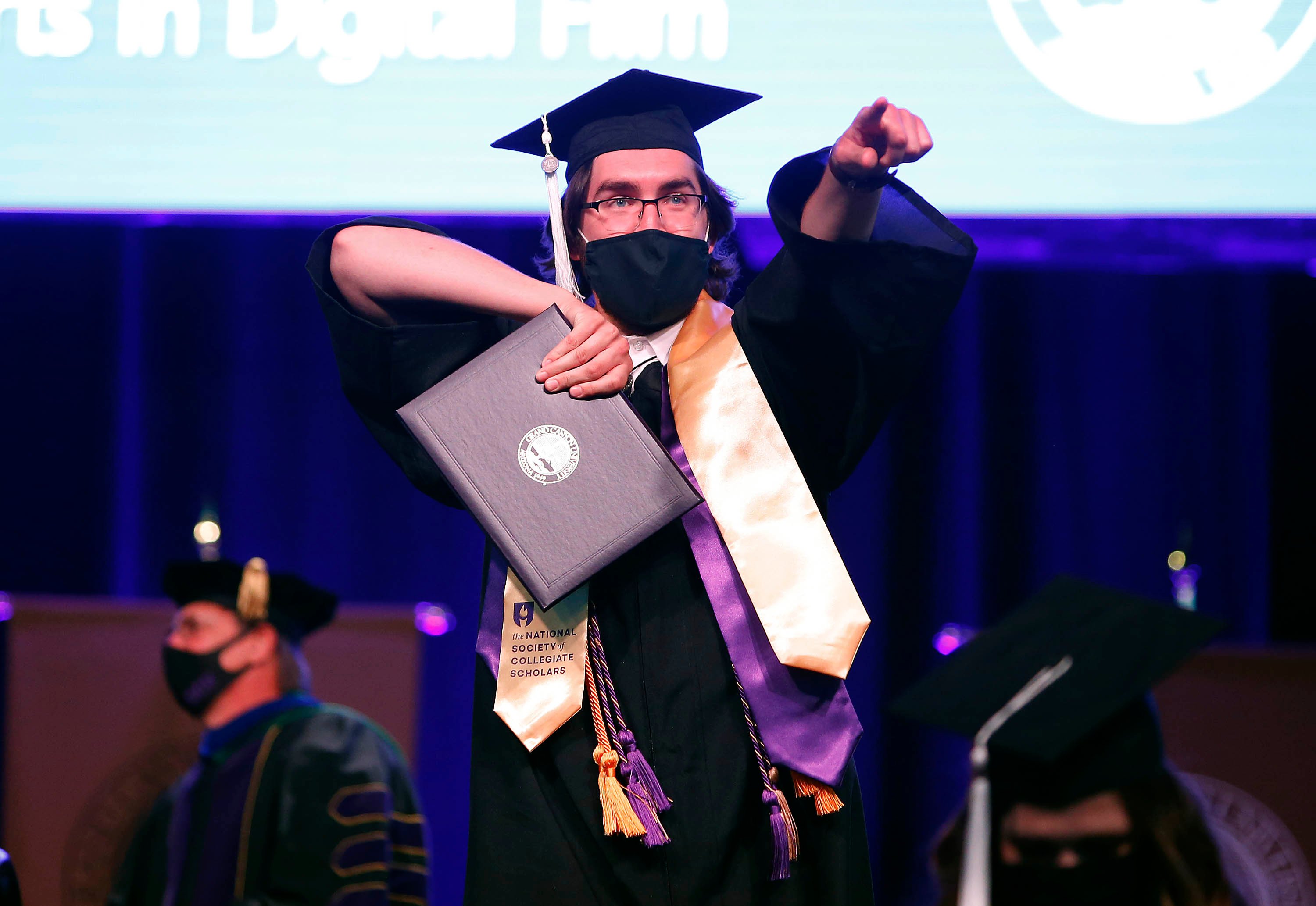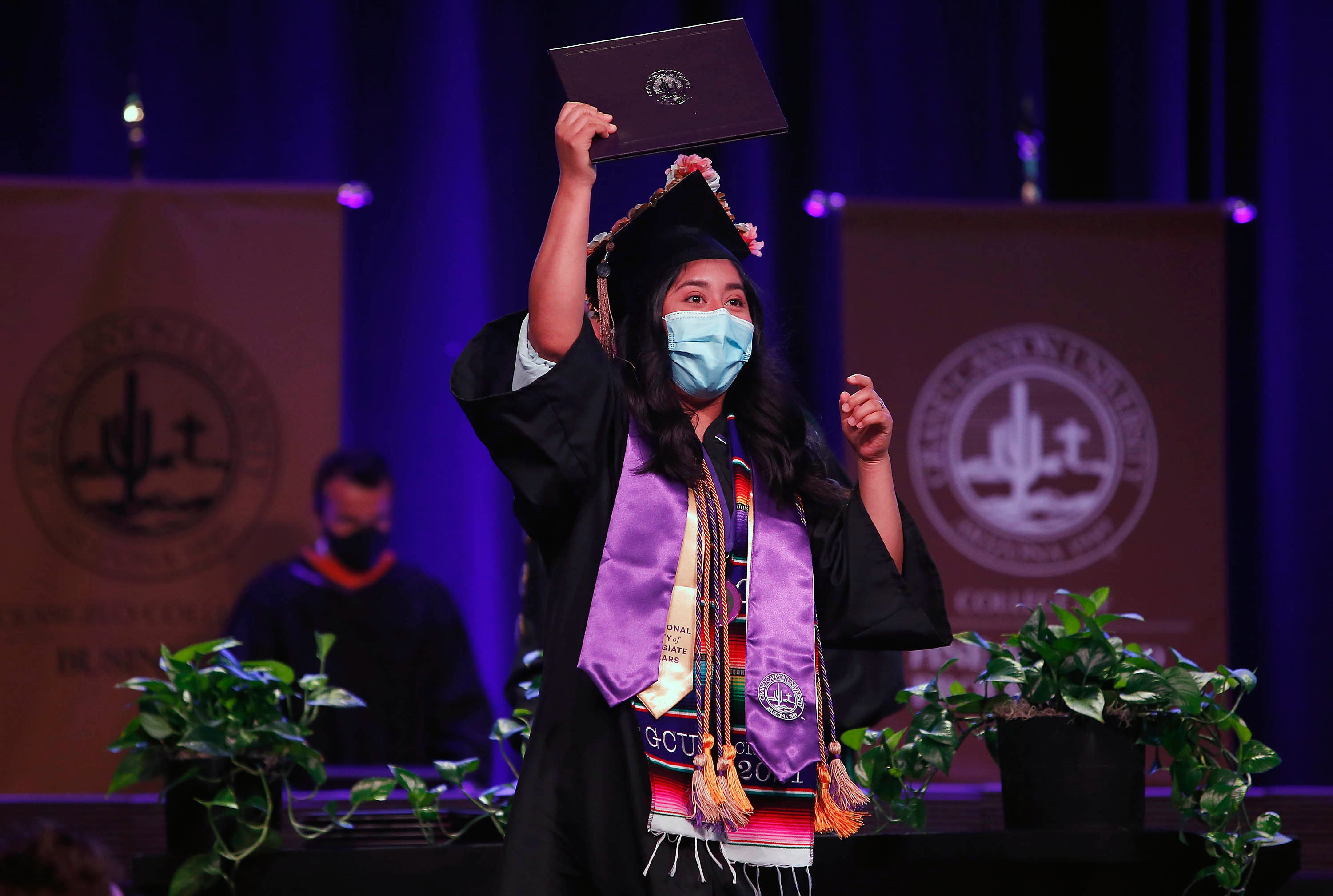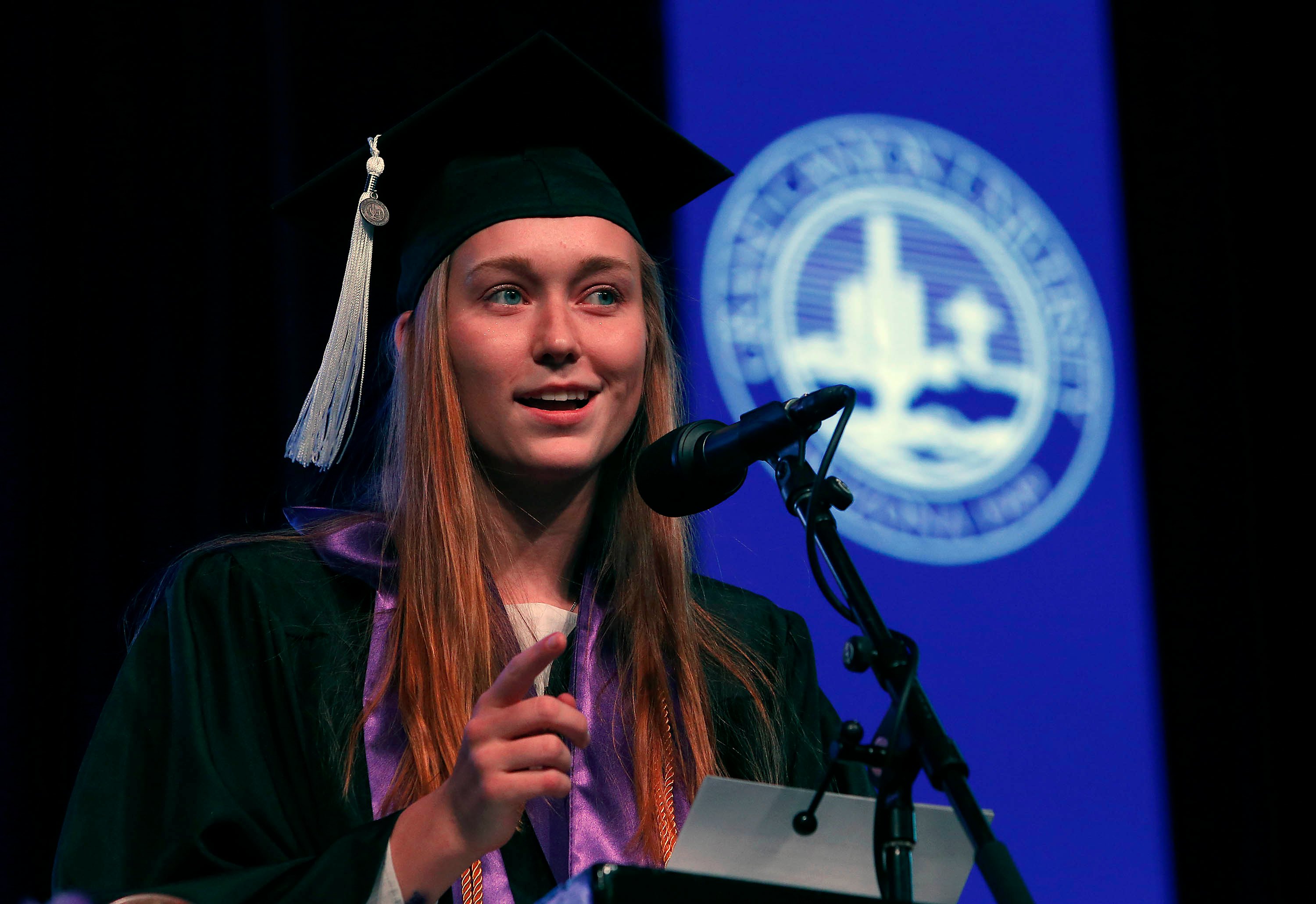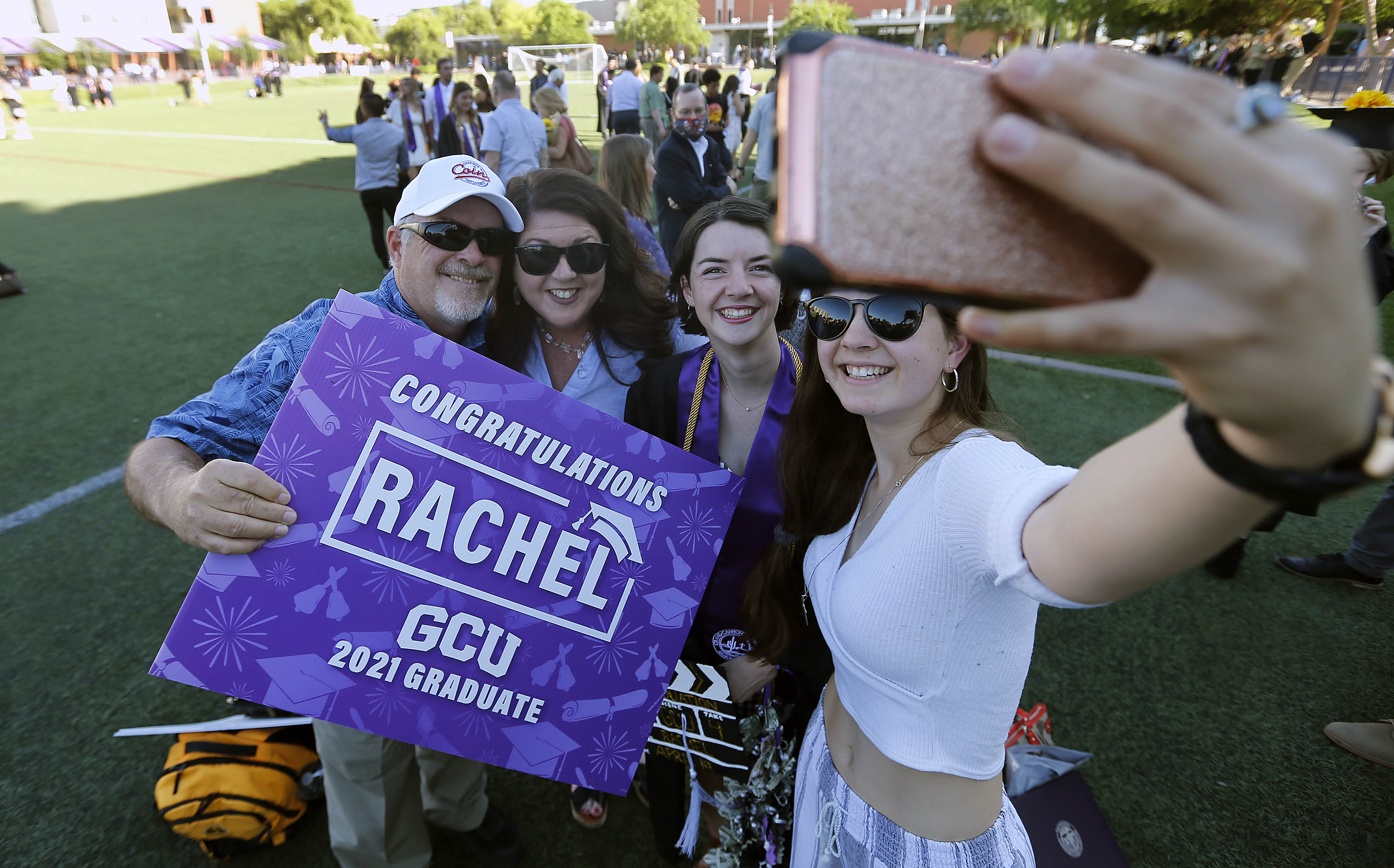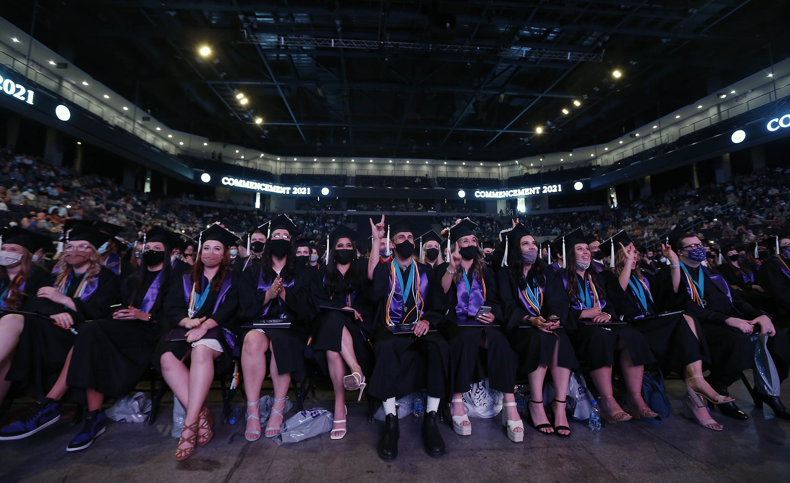 Graduates of the Colangelo College of Business and the College of Fine Arts and Production were honored Monday afternoon at GCU Arena during Spring Commencement. Kennedy Adams, who received her Bachelor of Arts in Advertising and Graphic Design, was the student speaker.