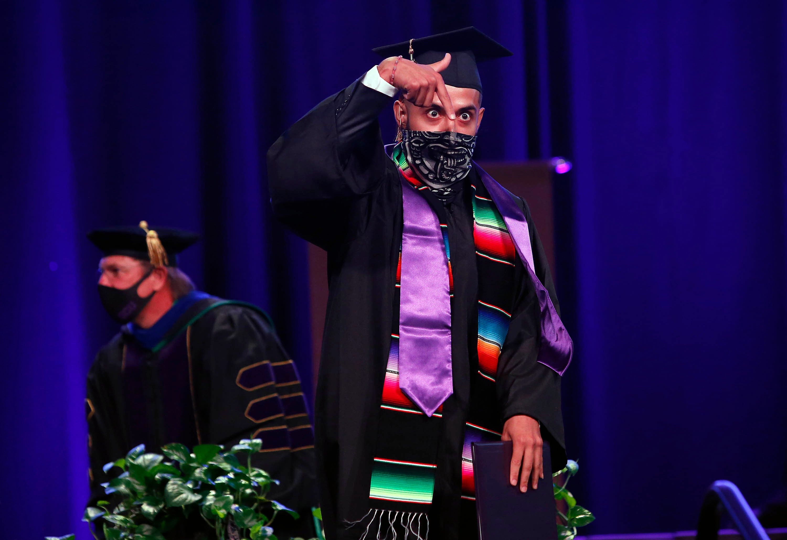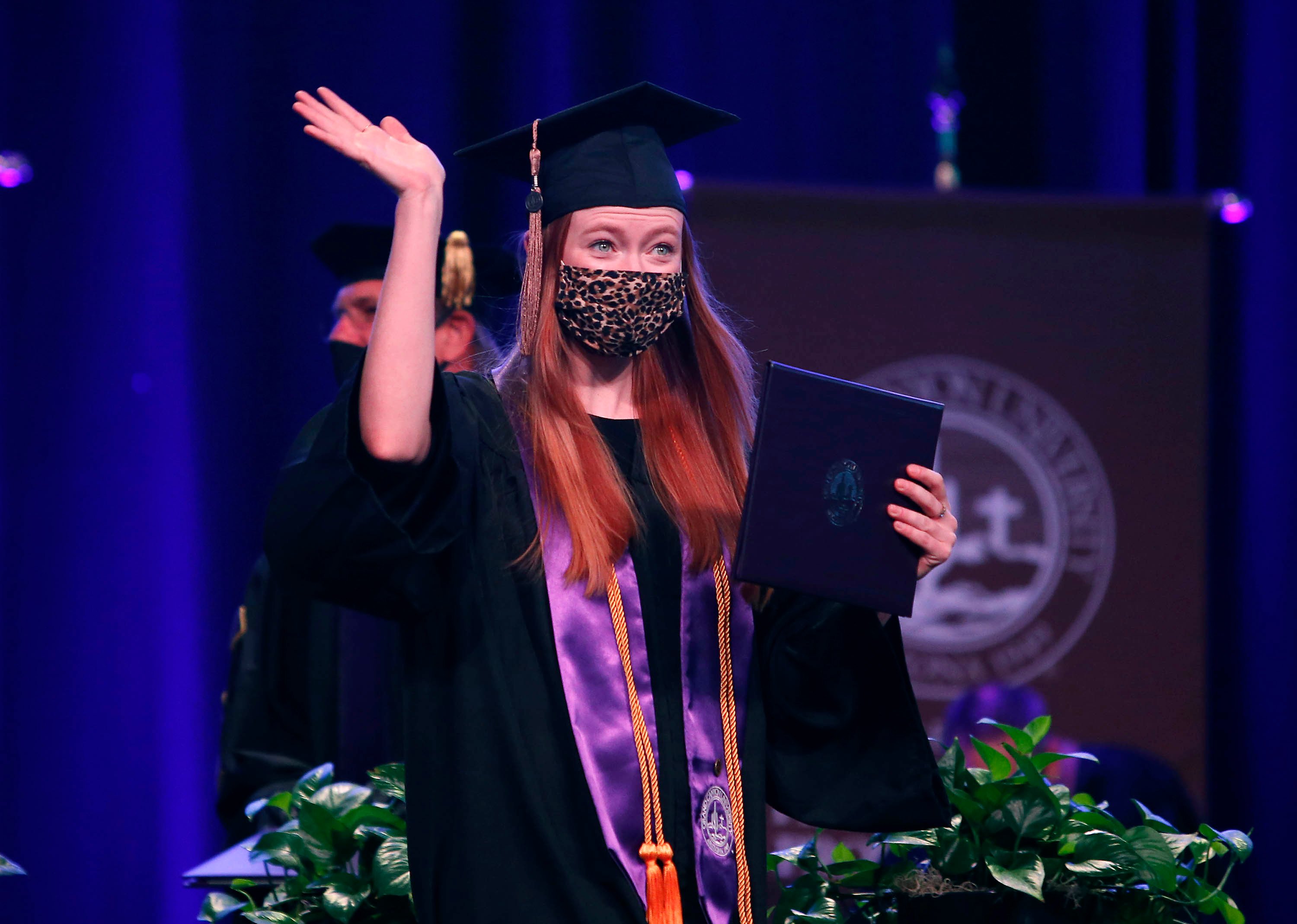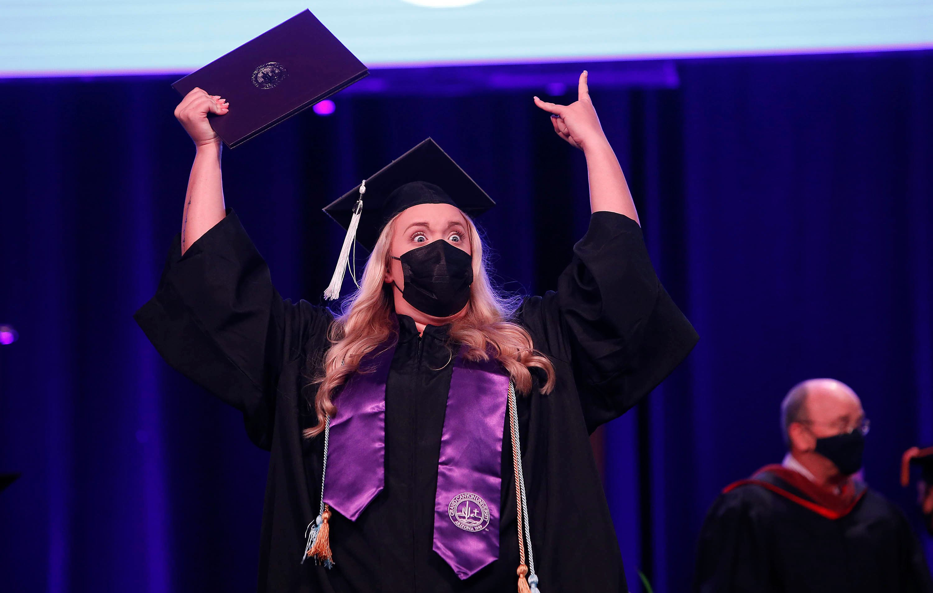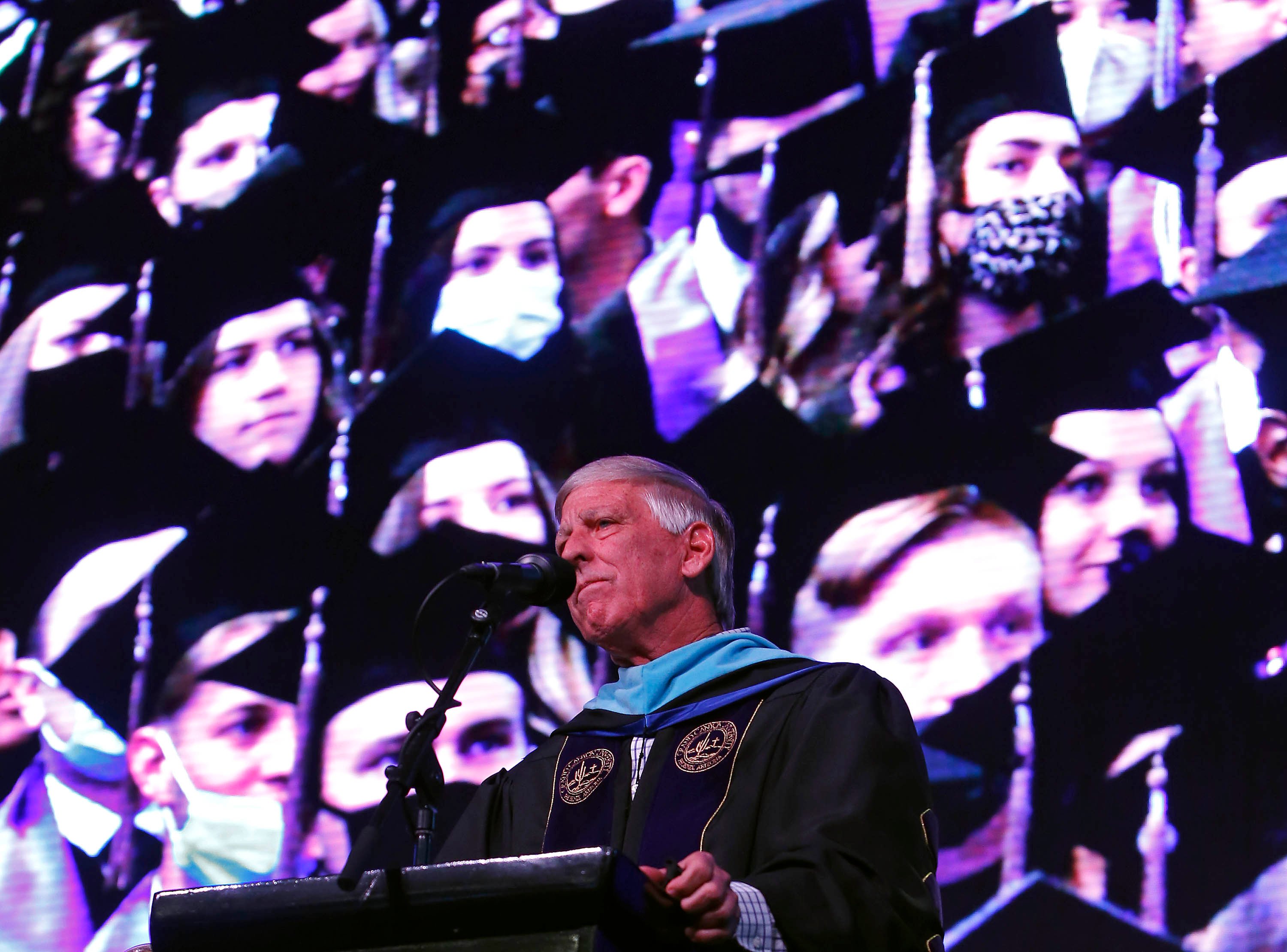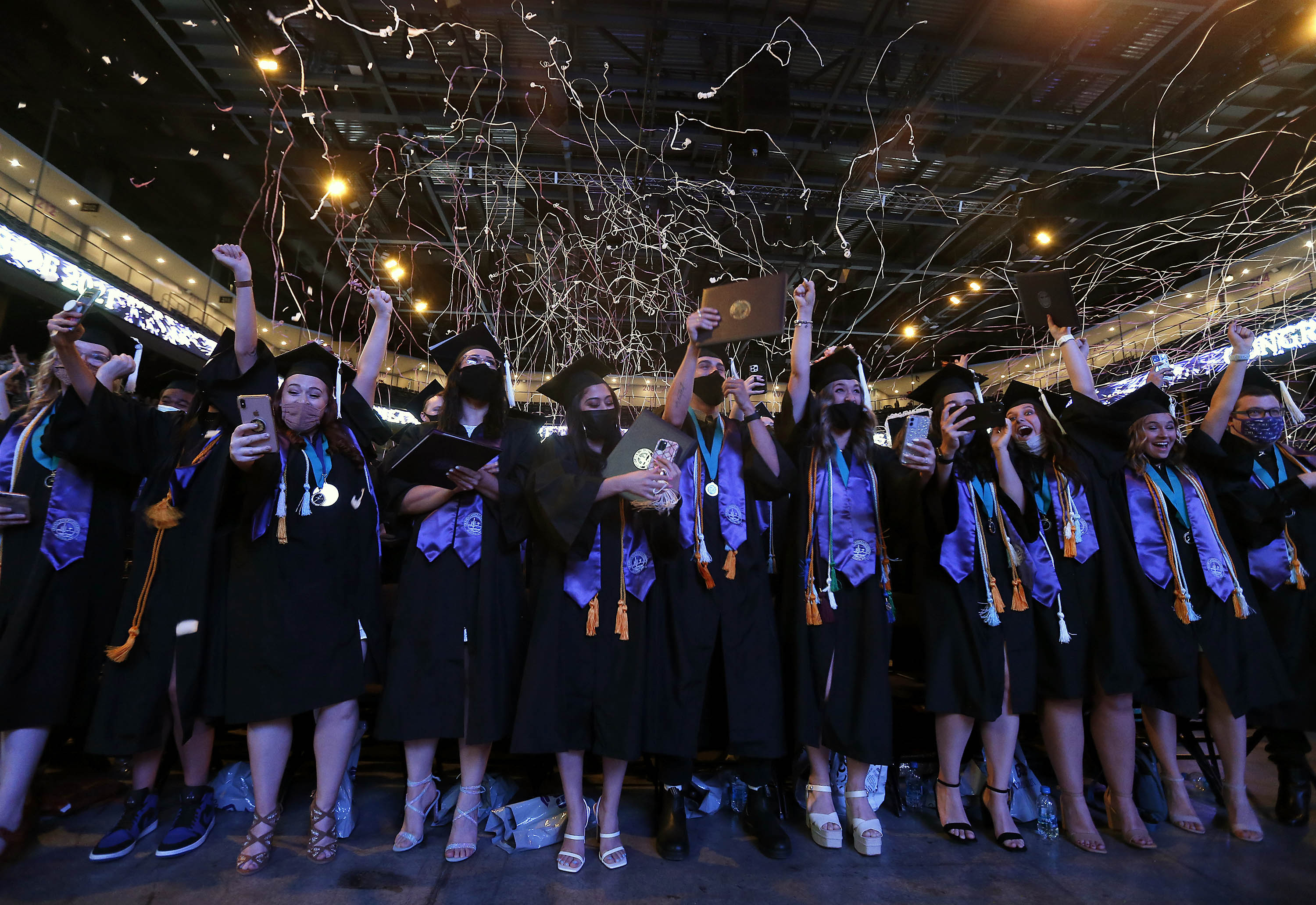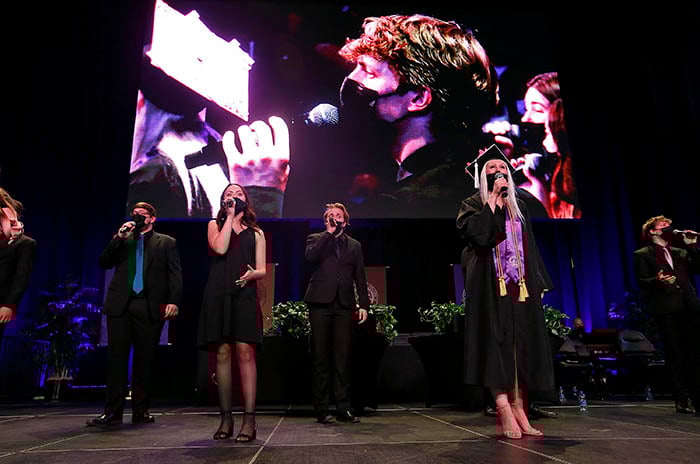 Graduates of the Colangelo College of Business and the College of Fine Arts and Production were honored Monday afternoon at GCU Arena during Spring Commencement. Kennedy Adams, who received her Bachelor of Arts in Advertising and Graphic Design, was the student speaker.