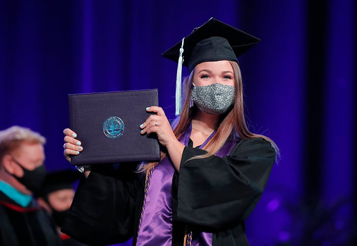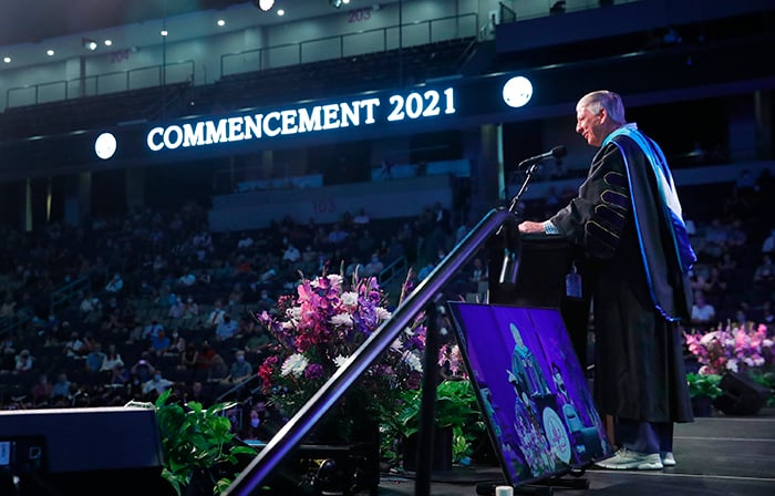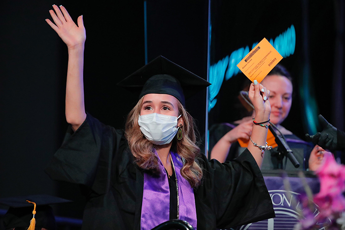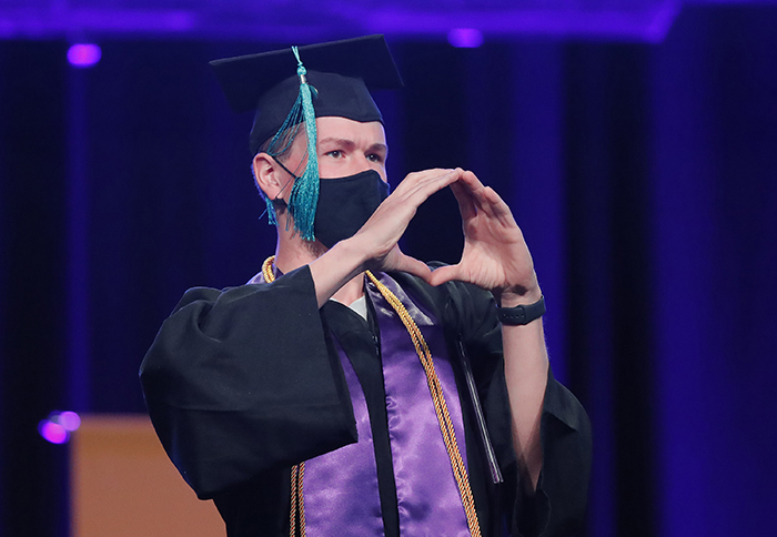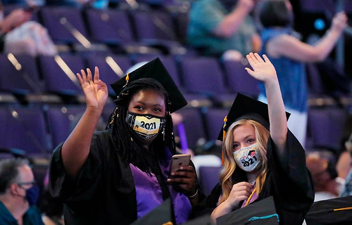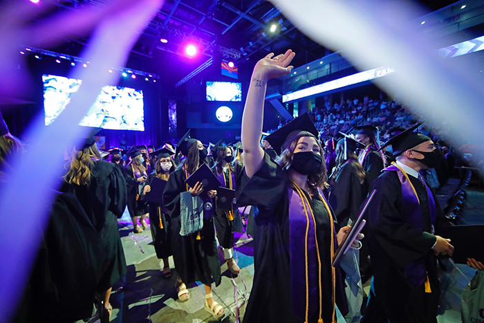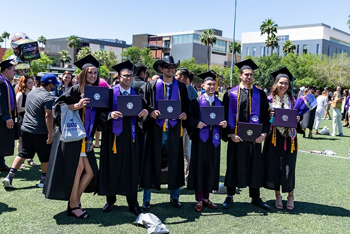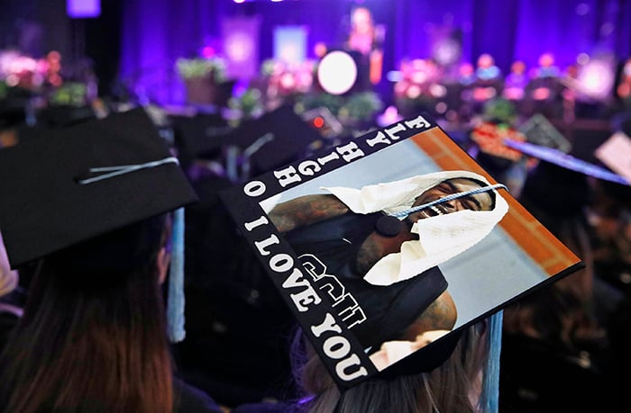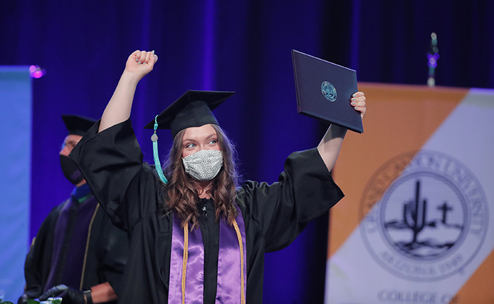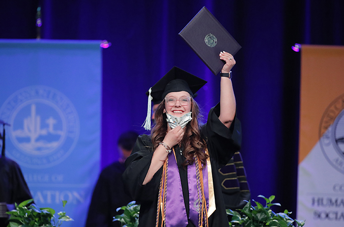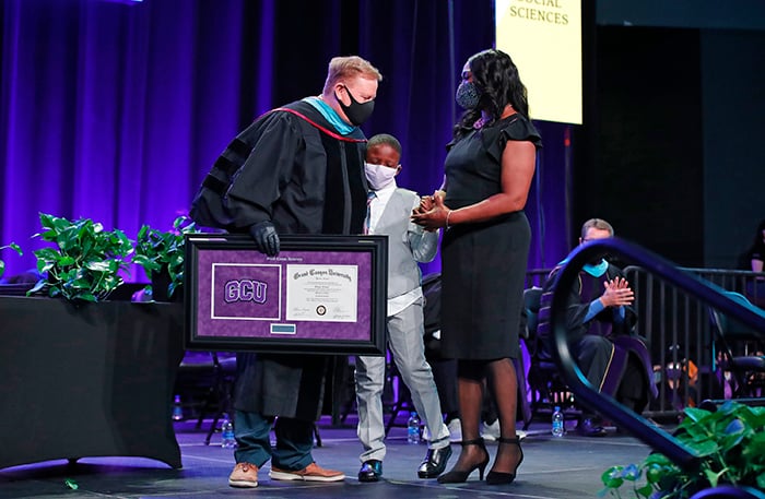 The first of four Spring Commencement sessions celebrated graduates of the College of Education and College of Humanities and Social Sciences on Monday morning. It included a diploma awarded posthumously to Bionca Sparrow, mother of GCU basketball player Oscar Frayer, who was killed in an auto accident last month. The student speaker was Kayla Peterson of the College of Education.