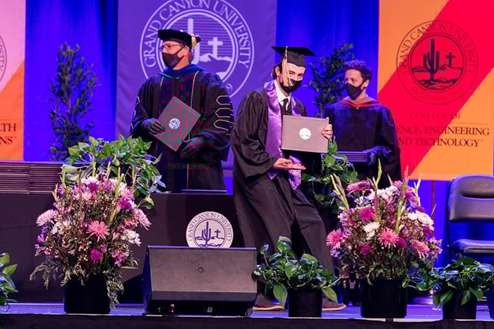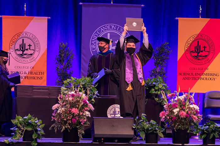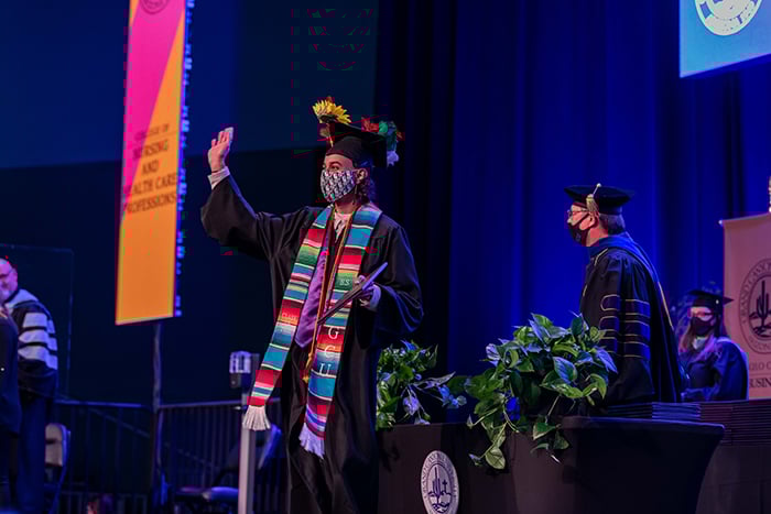 Graduates of the Colangelo College of Business, College of Nursing and Health Care Professions, and College of Science, Engineering and Technology participated in the Saturday afternoon ceremony at Winter Commencement.