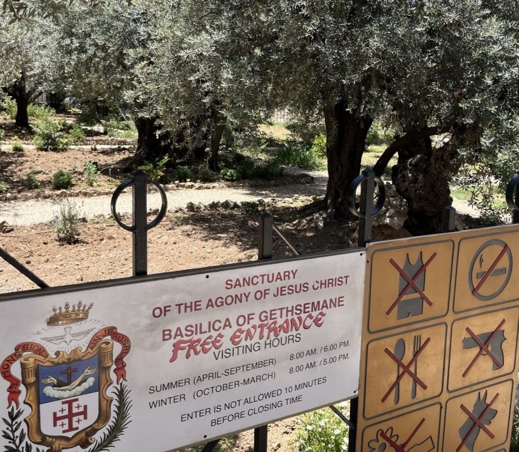 Field was emotionally moved by a stop at the Garden of Gethsamane, where Jesus prayed before He was captured and eventually crucified.
