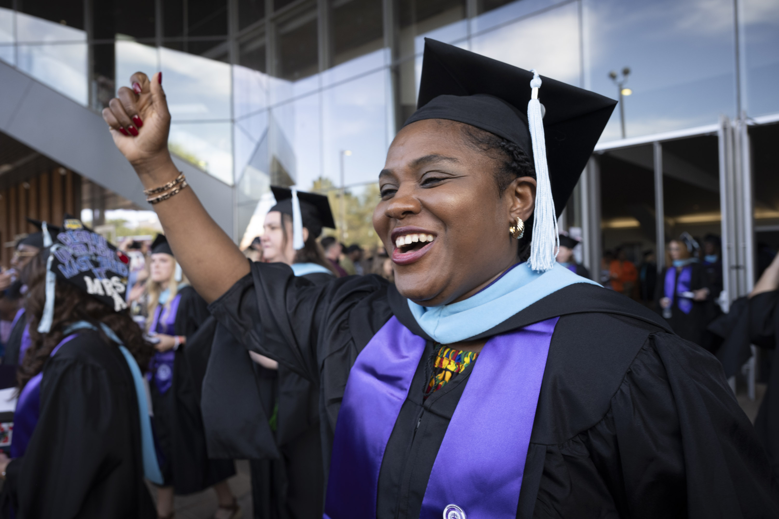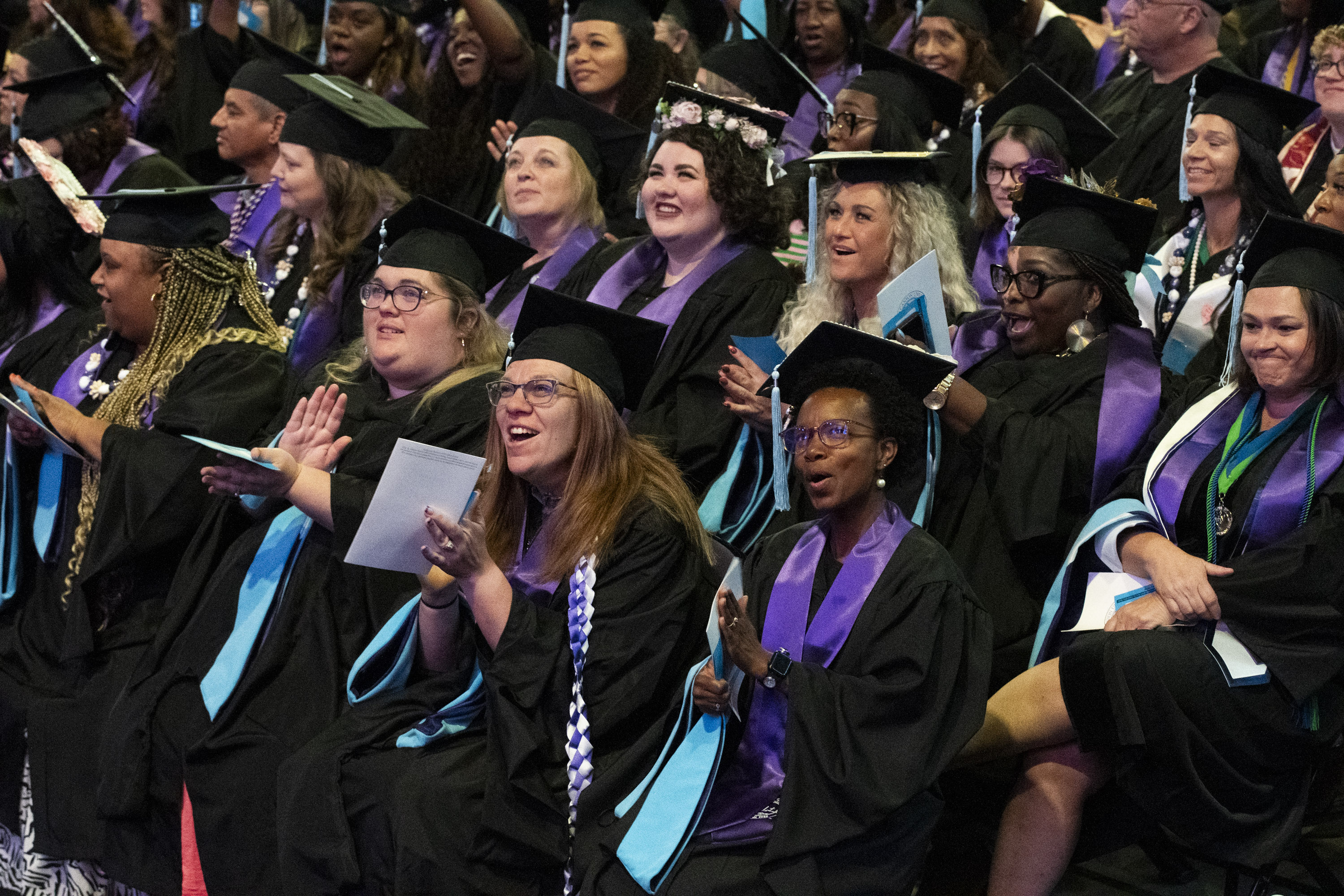 Graduate students from the College of Education who completed requirements for their master's degrees culminated their academic journey at the Thursday afternoon, May 1, 2025, commencement ceremony at Global Credit Union Arena.