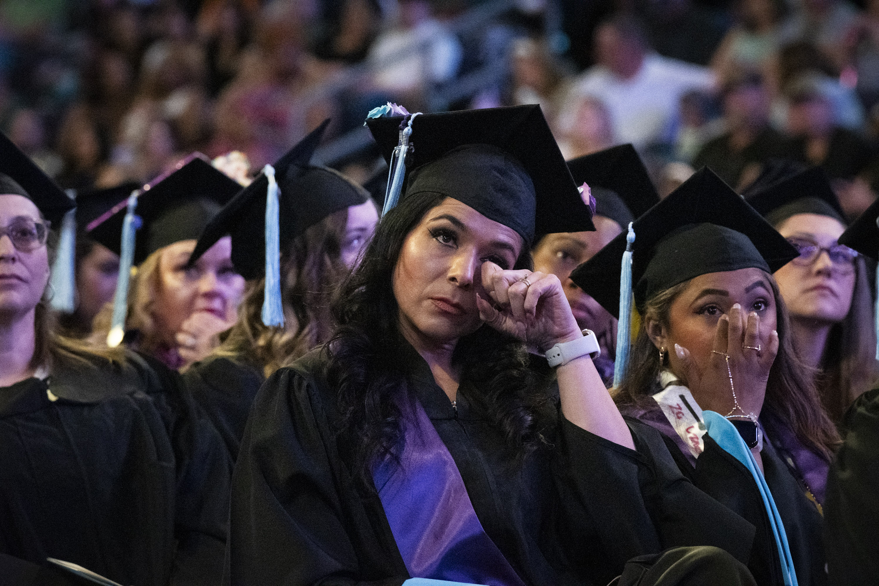 The emotions ran high at the Thursday afternoon, May 1, 2025, commencement ceremony for College of Education master's graduates. -