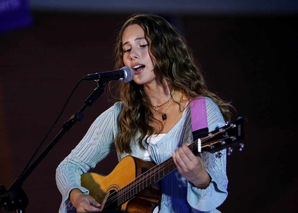 Ainsley Heldt performs the song “God of All Grace” during the Songwriters Showcase at the Engineering Building courtyard. April 20, 2026. -