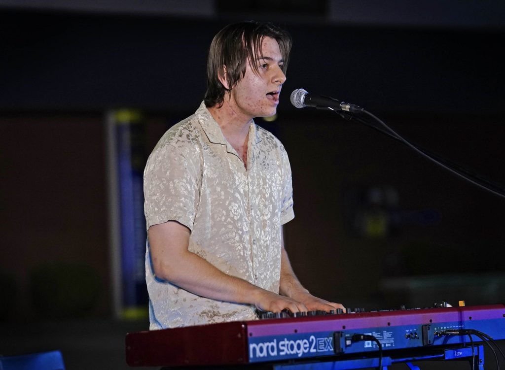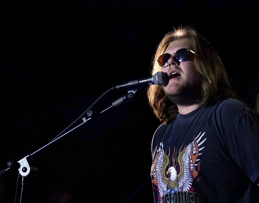 Hayden Wayne Conway and The Grand Collective perform the song “What a Beautiful Thing” during the Songwriters Showcase at the Engineering Building courtyard. April 20, 2026. -