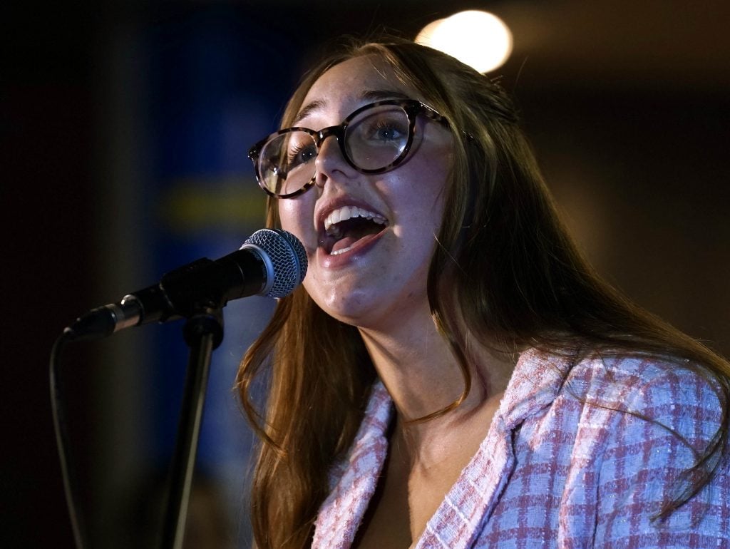 Rita Stewart and The Grand Collective perform the song “Remain In Me” during the Songwriters Showcase at the Engineering Building courtyard. April 20, 2026. -