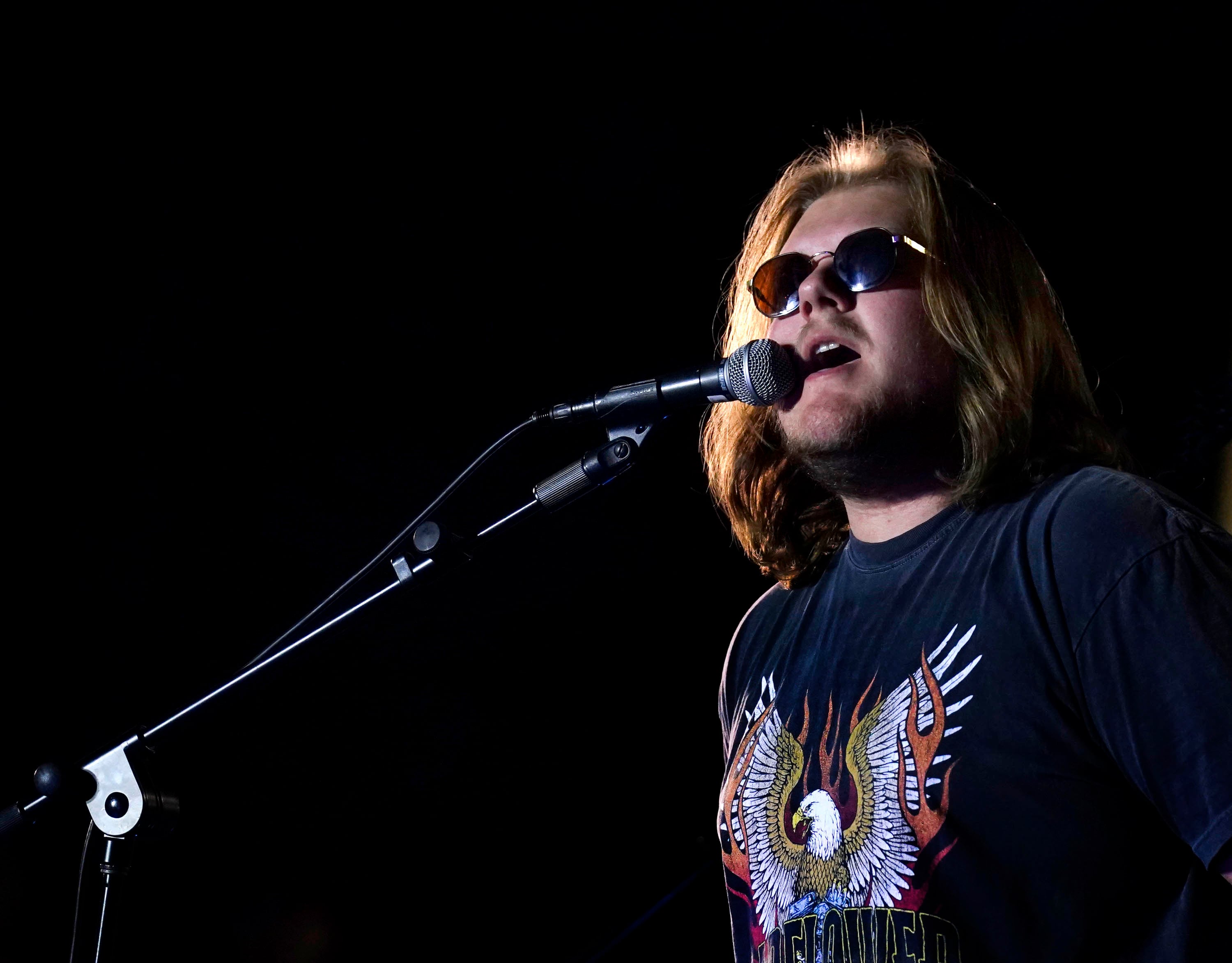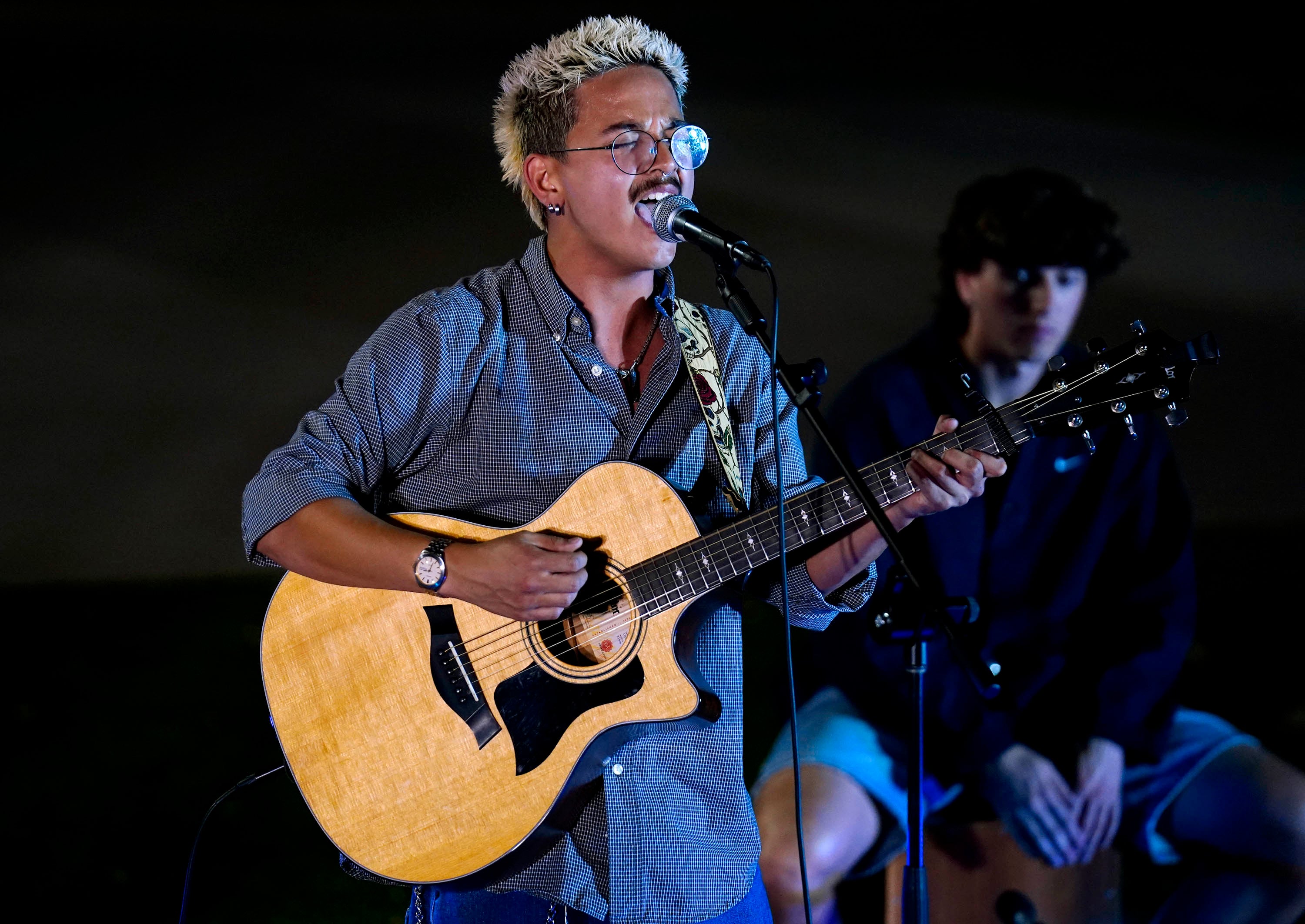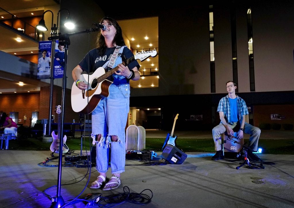 Skylar Everett performs an original song during the Songwriters Showcase at the Engineering Building courtyard. April 20, 2026. -