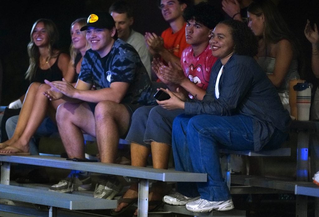 The crowd reacts to the students' performances during the Songwriters Showcase at the Engineering Building courtyard. April 20, 2026. -