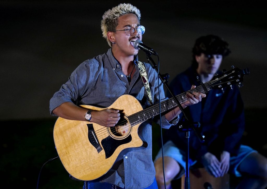 Sam Benitez performs his song “Psalm 136” during the Songwriters Showcase at the Engineering Building courtyard. April 20, 2026. -