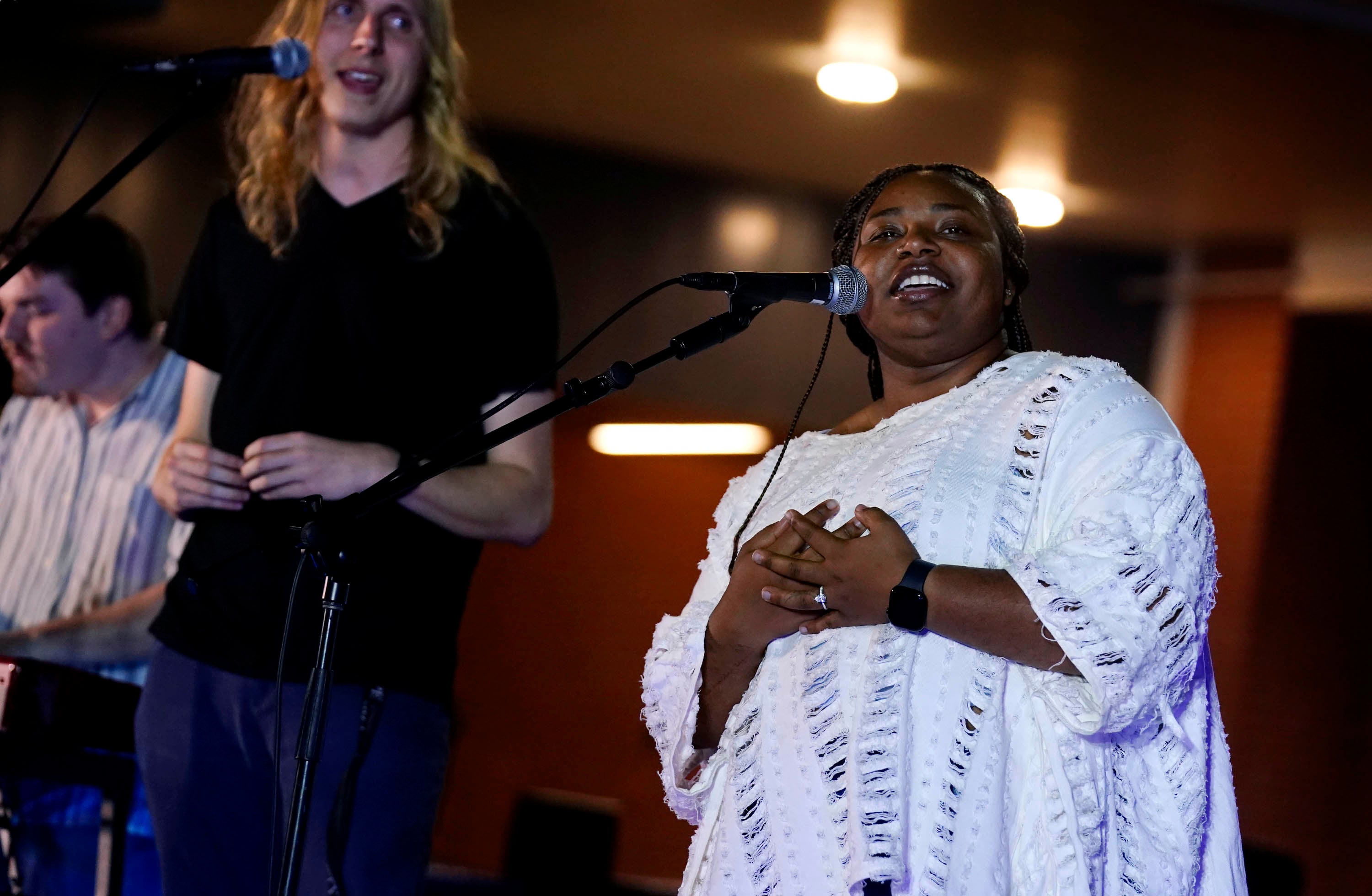 Samira Doxie performs her song “God of All Grace” during the Songwriters Showcase at the Engineering Building courtyard. April 20, 2026. -