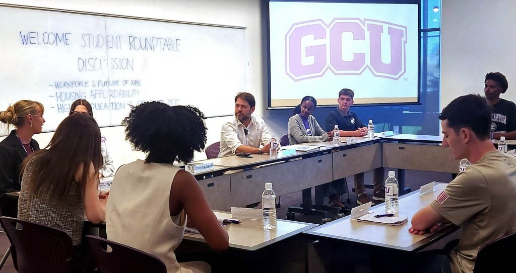 Sydney Whittall, who’s in her final year at GCU and plans to become an attorney, shared her story. She lives off campus and, to afford rent and school, works two jobs – 60 hours a week – while being a full-time student.