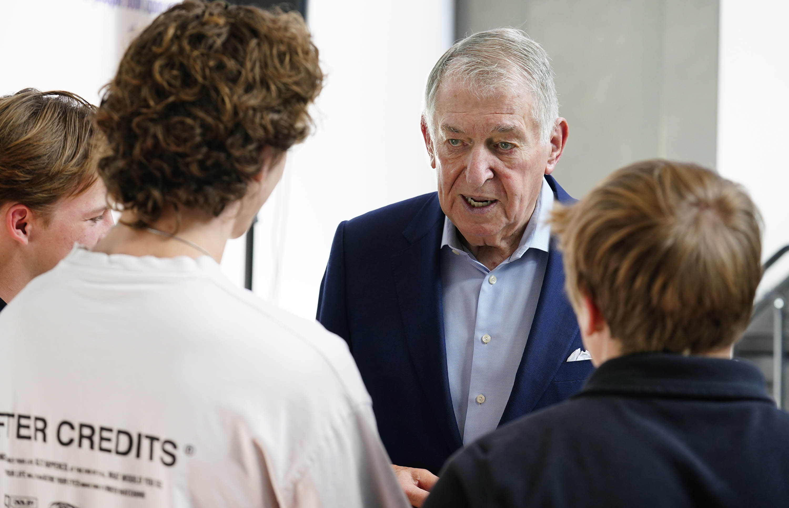 Jerry Colangelo talks with students following the T.W. Lewis Speaker Series event at the Colangelo College of Business lobby. -