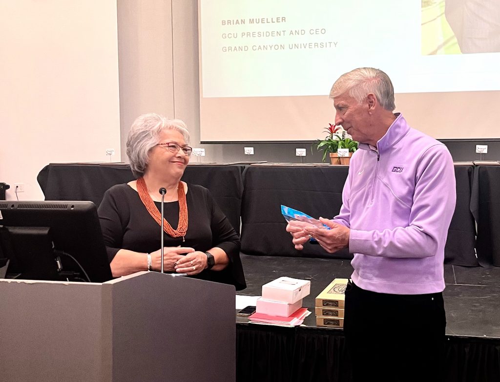 “I thought, oh my God, they’re picking up on these things that I’m telling them. I’m influencing them, hopefully in a positive way, which really made me want to just dive first into teaching,” said Banuelos on Tuesday in Grand Canyon University’s Sunset Auditorium.