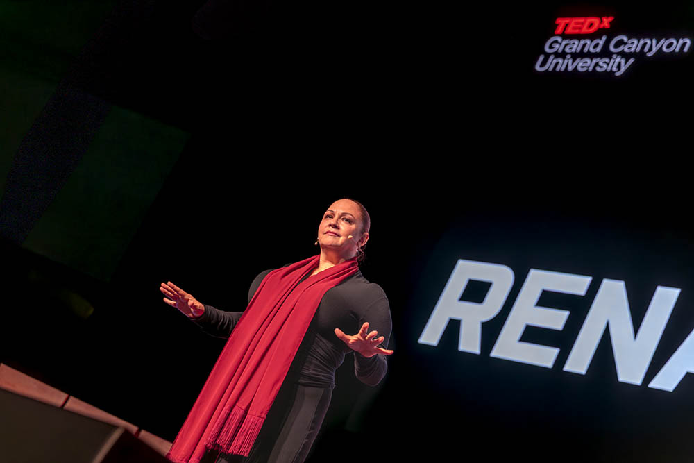 “In truth, it wasn’t that big … but from that moment on, my curiosity carried me,” she said to an audience of about 300 on Friday in Global Credit Union Arena during TEDxGCU, the annual presentation of talks designed to spark conversation and spread innovative ideas “meant to travel out with you in life,” said host Matthew Stout.