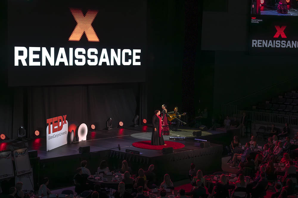 Themes like “Magnum Opus,” from TEDxGCU year two, embodied by flamenco dancer Julia Chacón. She shared how the artform connects people, while a guitarist and fellow dancer performed behind her.