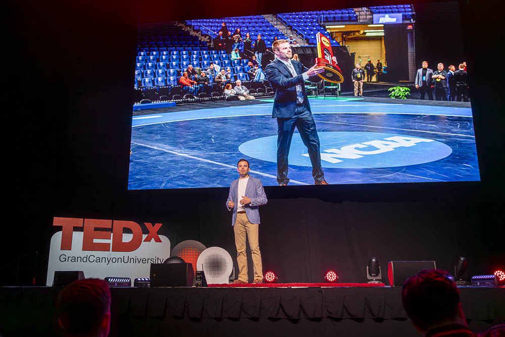 — Dalton Jensen, a three-time NCAA championship coach who is head wrestling coach at the University of Nebraska at Kearney, spoke on “Expectation vs. Reality: The Human Desire for Contentment.” He said there’s often a gap between reality and expectation. Closing that gap is how we reach contentment. He emphasized understanding the root of the goals we set, not getting lost in the moment and, after those big achievements, taking time to reflect and learn.