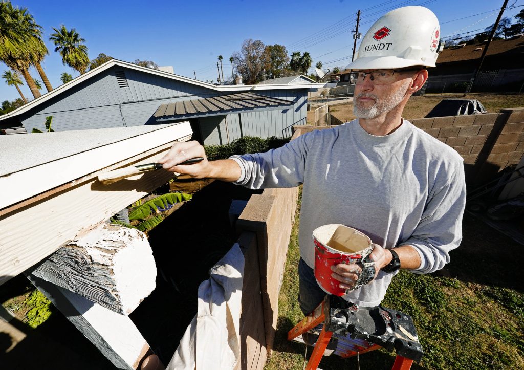 Dusty Parsons, chief marketing officer at Habitat for Humanity Central Arizona, was on the Promenade at GCU by 7 a.m. Saturday, where more than 100 students and faculty gathered before dispersing, many by foot, to nearby homes for Lopes Go Local.