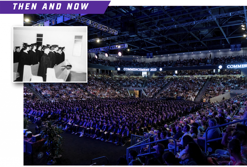 The humble commencement ceremonies of the 1960s have grown into a monumental spectacle, filling GCU Arena with new graduates and their proud families. -
