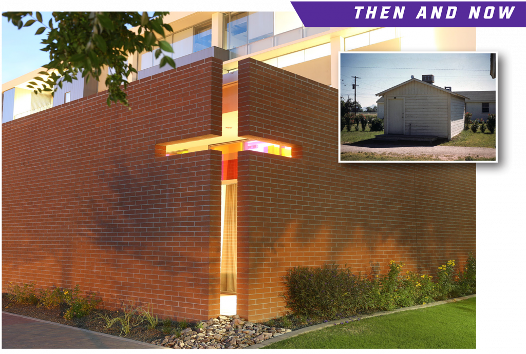 Featuring two antelopes, the front entrance sign in the 1960s has evolved into an expansive new entrance embodying the university’s growth, vision and welcoming spirit. -